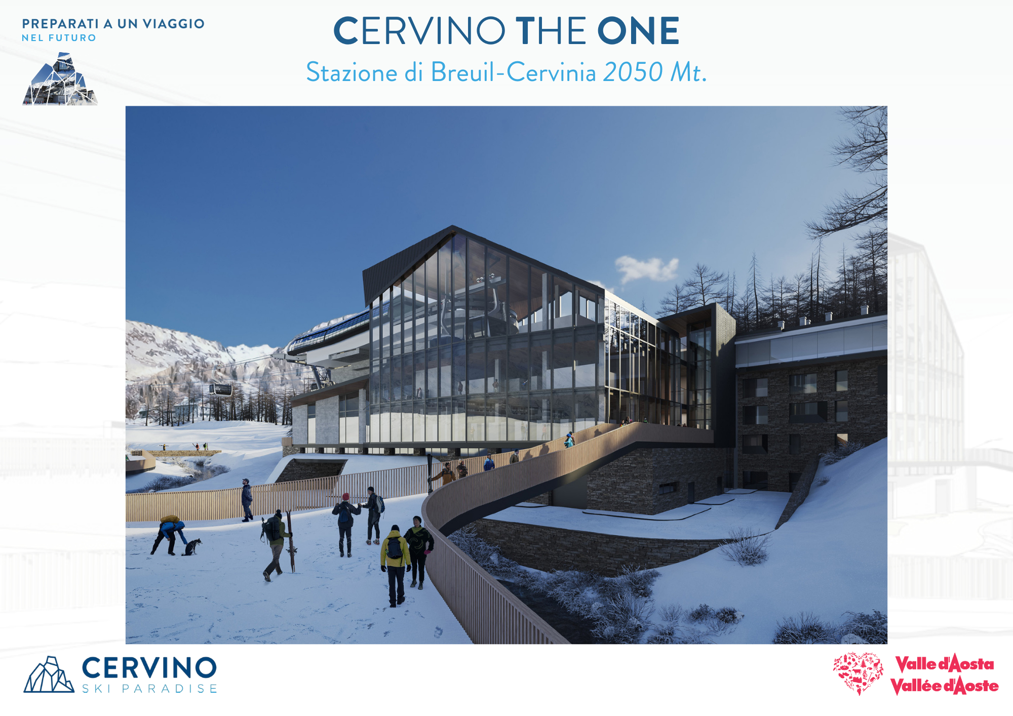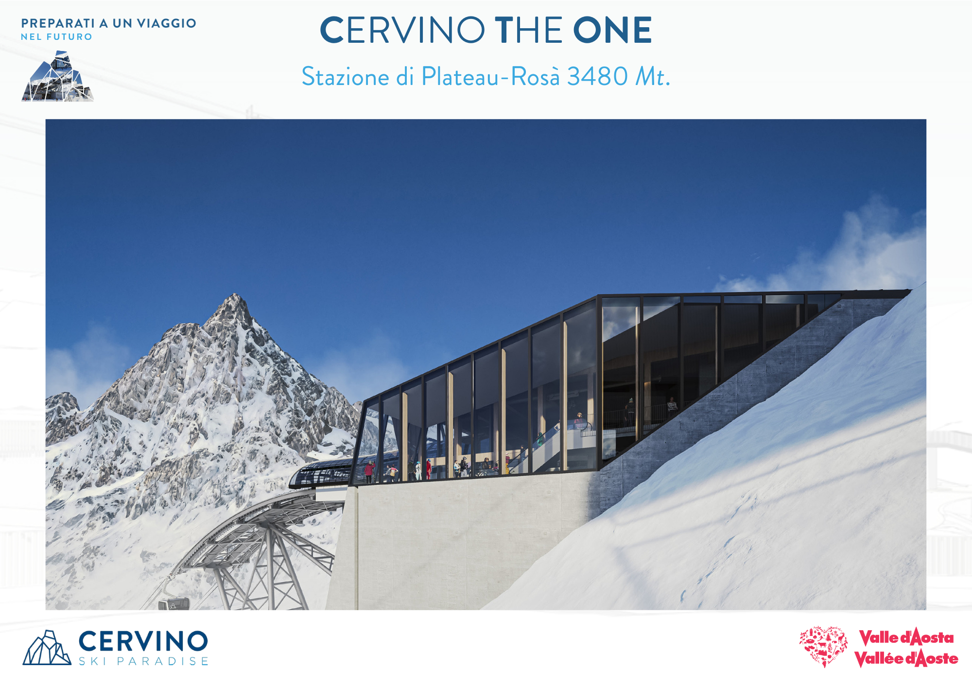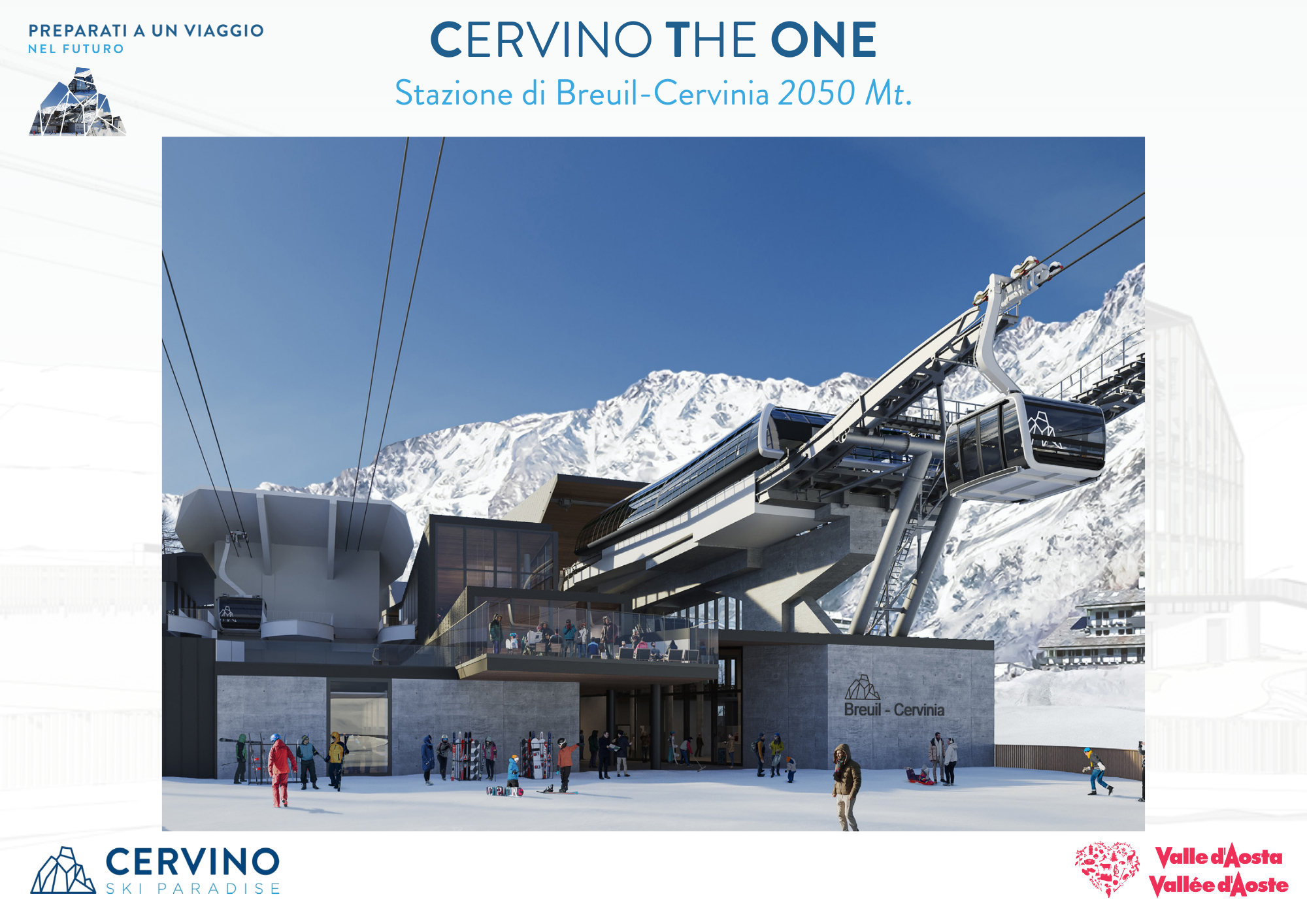 Im August wurde in Cervinia (ITA) das Projekt „Cervino The One” der Öffentlichkeit vorgestellt. Die neuen Seilbahnen werden die Fahrzeit zwischen Breuil-Cervinia und dem Plateau Rosa im Herzen des länderübergreifenden Skigebietes Zermatt-Cervinia (Matterhorn Glacier Paradise) von 50 auf nur 17 Minuten verkürzen.