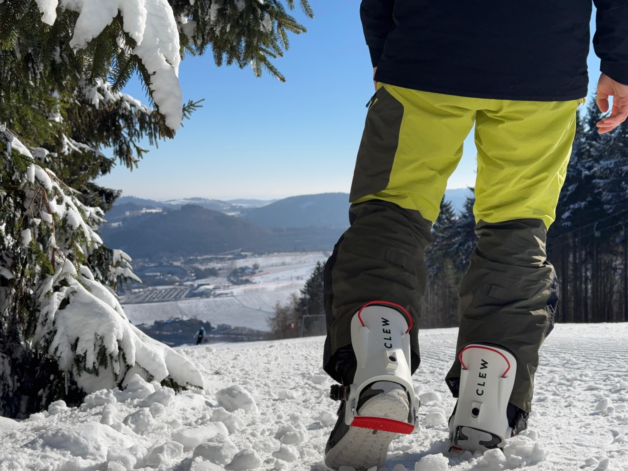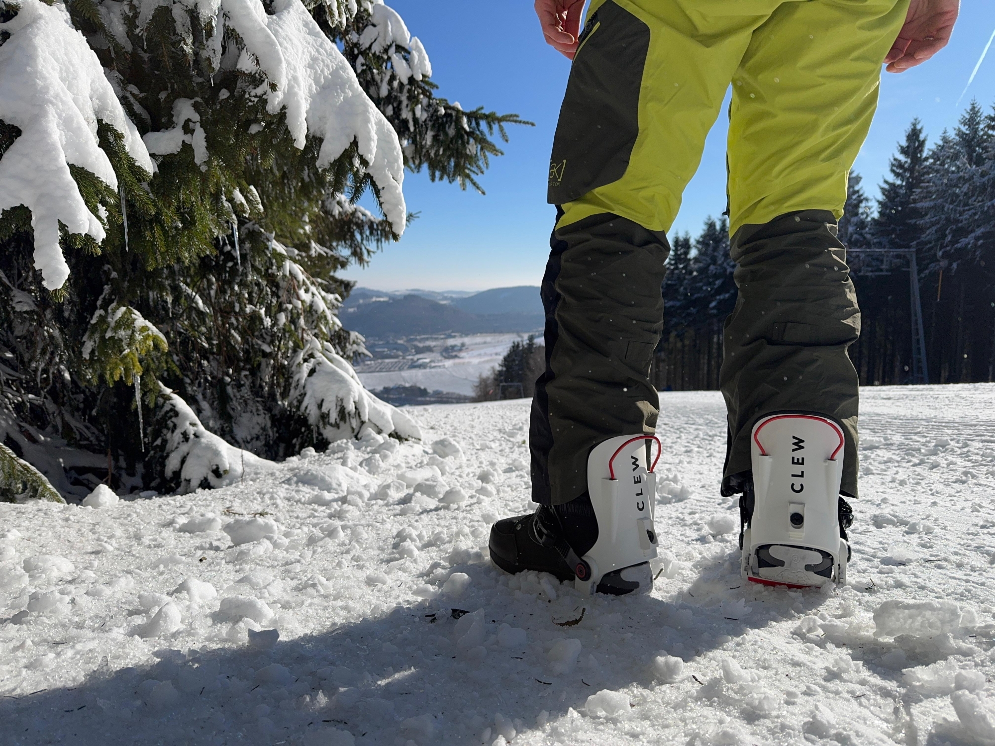 Besonders positiv fällt in unserem Test das rasche und sehr solide funktionierende Ein- und Ausstiegssystem auf, welches sich in der Praxis als äußerst effizient erweist. Besonders in kleinen Skigebieten mit vielen kurzen Abfahrten zeigt sich, wie viel Energie es über einen Board-Tag einspart, wenn das häufige Ein- und Aussteigen aus einer konventionellen Bindung wegfällt. Die CLEW Bindung eignet sich daher hervorragend für Snowboarder, die häufig an- und abschnallen müssen – sei es auf kurzen Strecken, in Skihallen, in Skigebieten mit vielen Gondeln oder auch für Snowboardlehrer.