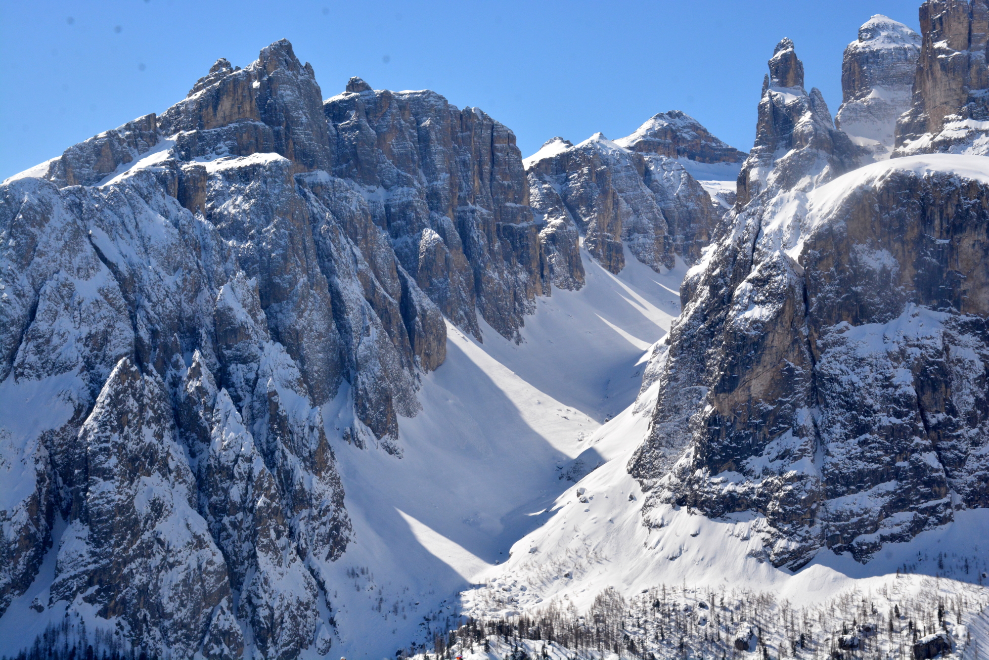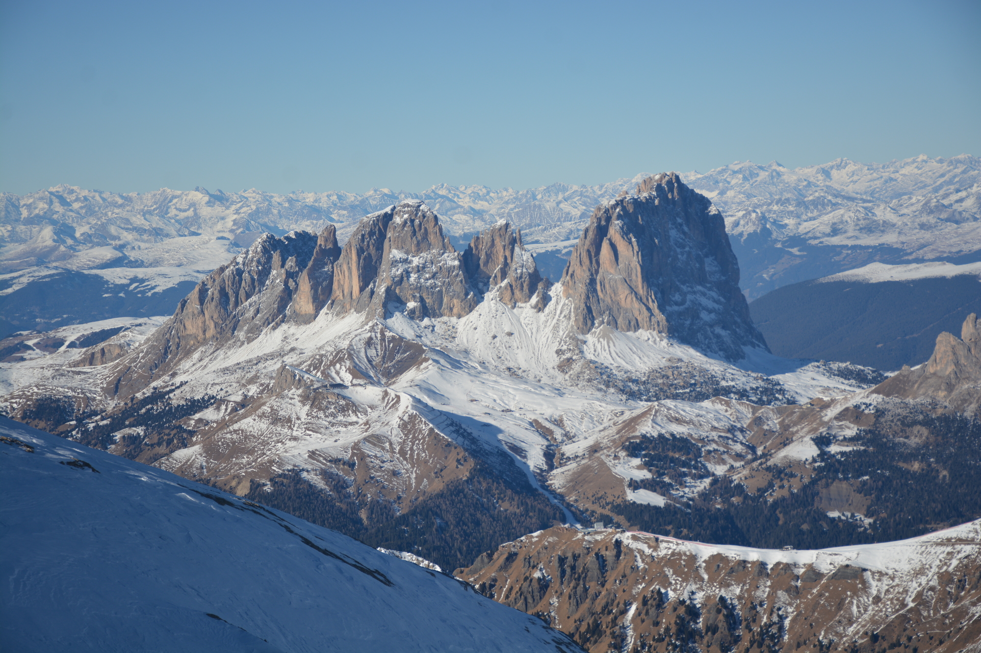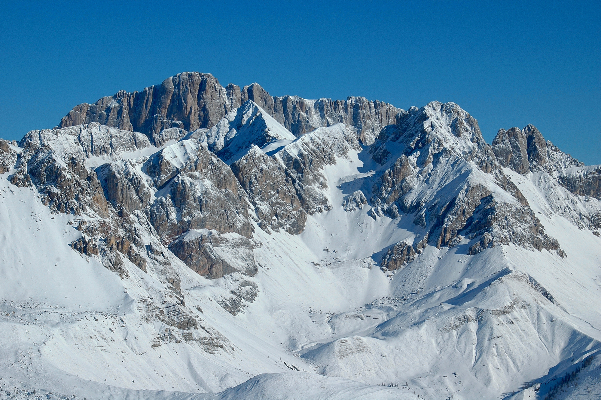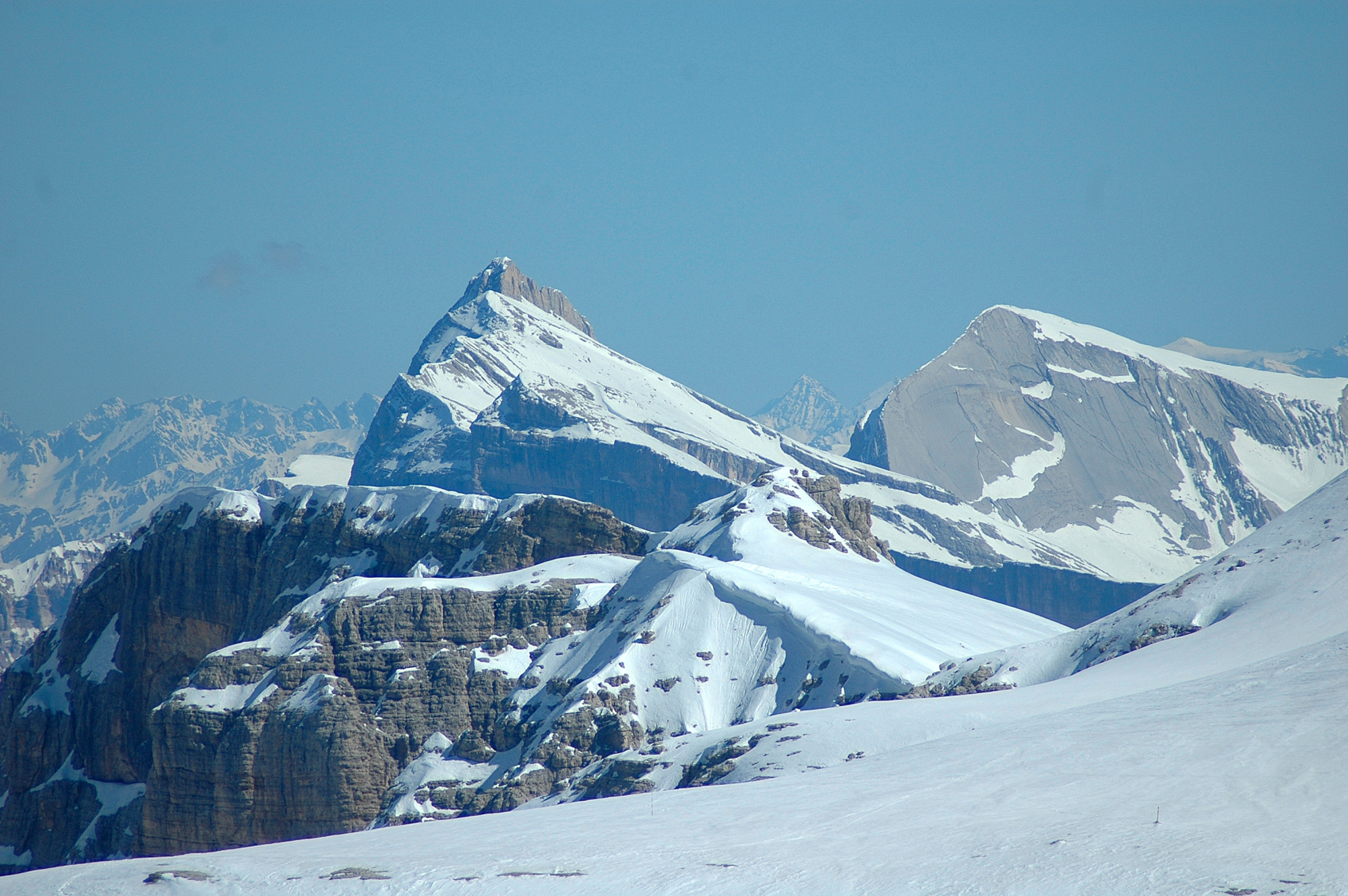 Der hoch über dem Pordoijoch (2239 m) aufragende Felsgipfel besticht durch seine grandiosen Blicke in alle Himmelsrichtungen! Vielleicht am schönsten: Das Haupt des Piz Ciavazzes (2828 m)! Oder doch die Civetta (3220m)? Oder die Marmolada (3343 m)? Oder der Langkofel (3181 m)? Oder, oder, oder? Auch ein markantes Gipfel-Duo in den Fanes-Bergen macht auf sich aufmerksam: Die Zehnerspitze (3026 m) und die plattenförmige Neunerspitze (2968 m) ragen links neben dem Piz Boe (3152 m), genau über der im Winter geschlossenen Boehütte (2873 m), neben der die Skiabfahrt in das berühmte Mittagstal (Val Mesdi) beginnt, hervor. Die Auffahrt mit der magischen Seilbahn beginnt beim Pordoijoch (2239 m).
