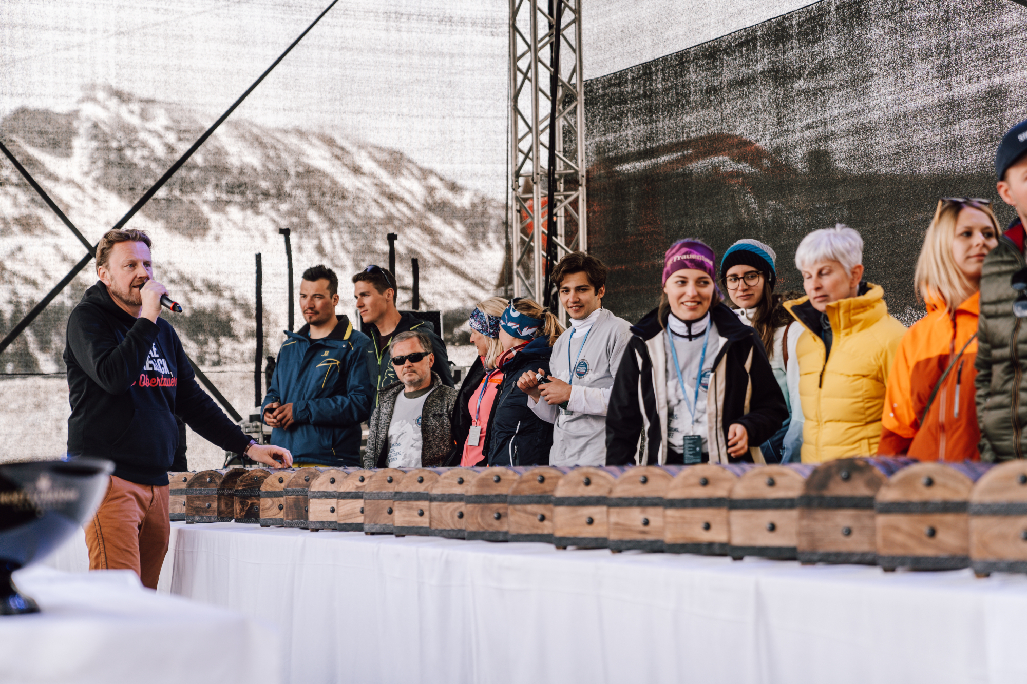 Beim Gamsleiten Kriterium bekommen die Teilnehmer am Freitag, den 10. April eine Startnummer ausgelost, die über den Zeitpunkt ihrer Schatzsuche bestimmt. Mit einer kleinen Gartenschaufel dürfen sie 2 1/2 Stunden graben und nach dem mehr als 30 Schatzkisten suchen. Hat man eine der begehrten Truhen gefunden, begleitet das Security-Personal zum Notar außerhalb des Suchgeländes. Die Schatztruhen werden dort bis zur Öffnung bei der Siegerehrung verwahrt. Der zeitliche Ablauf beim Gamsleiten Kriterium am Samstag lautet wie folgt: