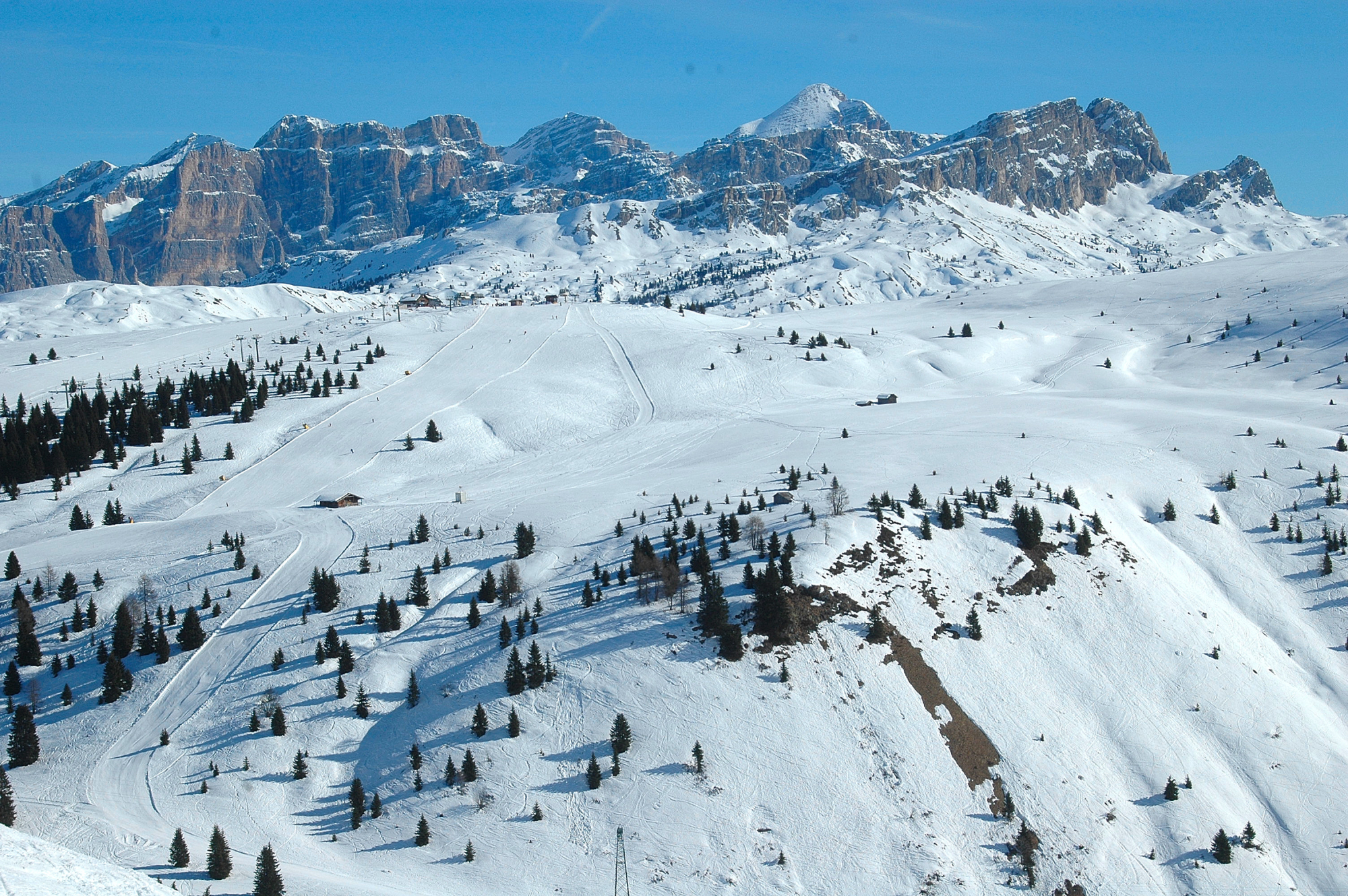 Wer in Sankt Kassian oder La Villa startet, kann am Passo Campolungo (1875m) mit nur 3 Liften eine Runde über Corvara (1568m) und den aussichtsreichen Vallon (2550m) machen und gelangt vom Vallon über eine lange (teilweise schwarze) Abfahrt wieder zum Passo Campolungo. Bei der Fahrt mit dem „Arabba Fly“ sieht man über die Kirche von Arabba hinweg zum Col di Lana (2462m) und kann vielleicht sogar die Gipfel-Kapelle erkennen.