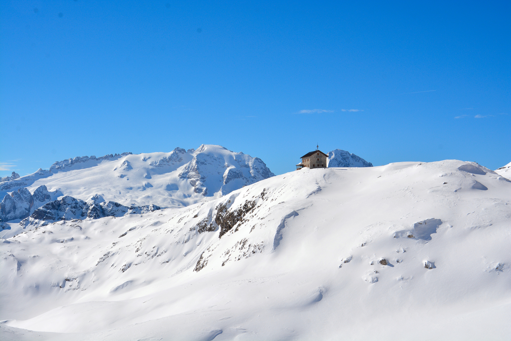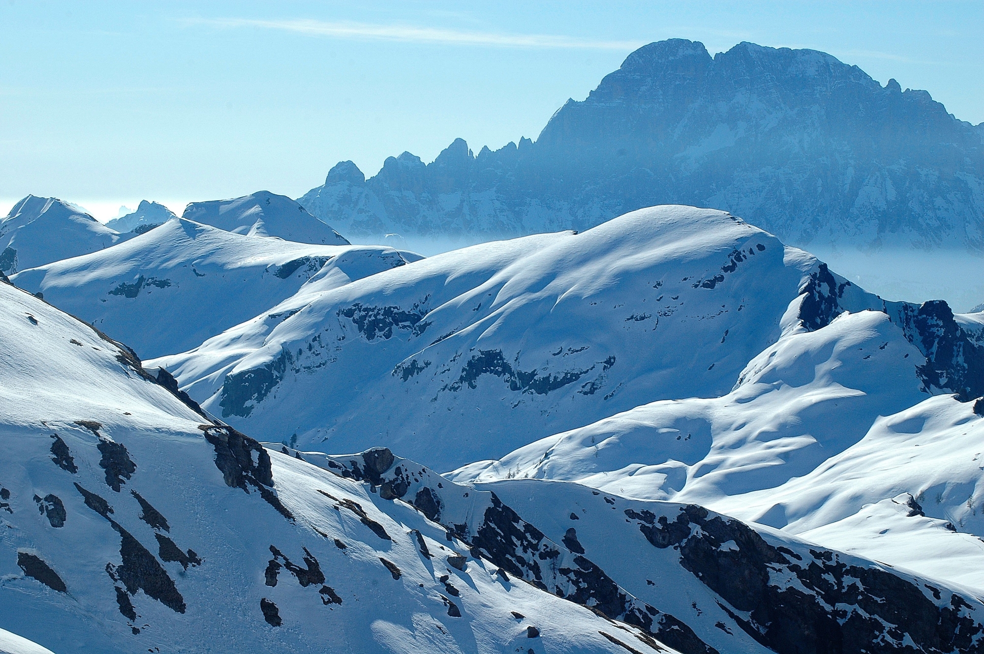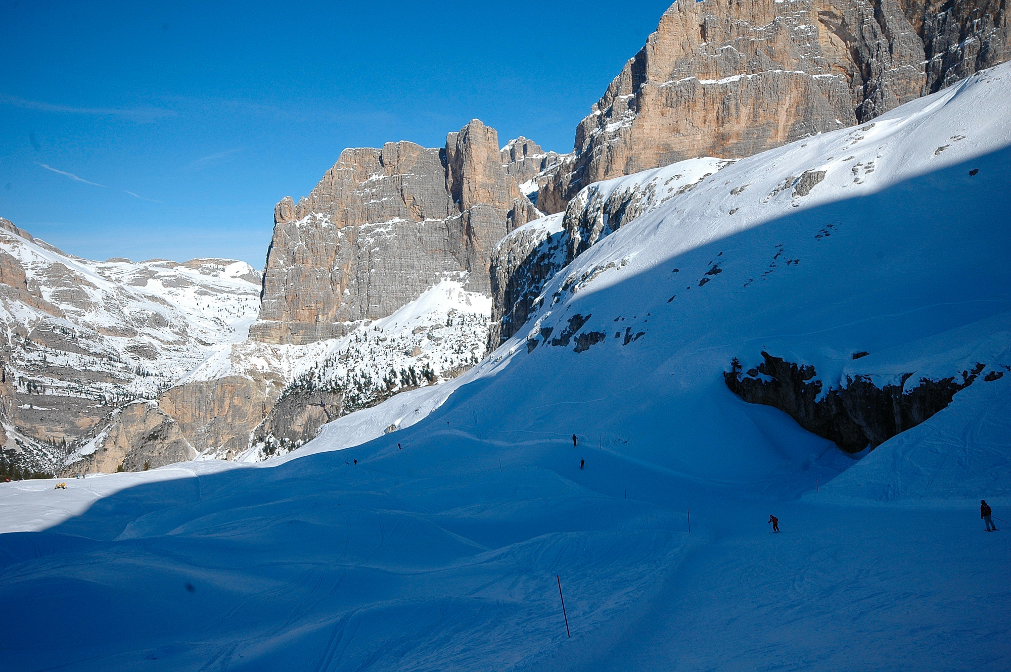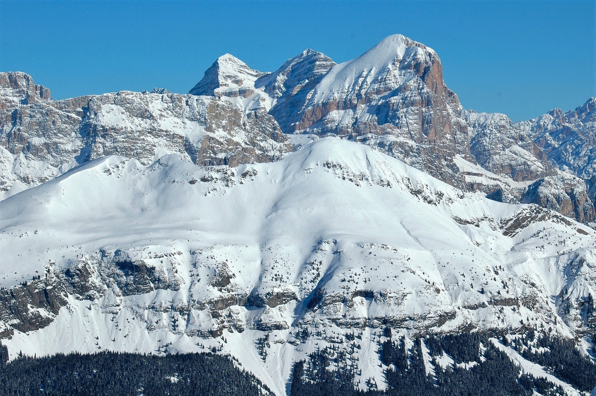 Skigebiet Arabba/Marmolada: Von der Porta Vescovo (2478m) hat man einen glanzvollen Blick auf Marmolada (3342m) und Gran Vernel (3210m), aber auch zum Biz Boe (3152m); vom Sesselift „Sass de la Vegla“ blickt man direkt über den Gipfel des Col di Lana zum Dreigestirn der Tofane. Bei der Abfahrt vom Padon Pass zum Fedaia Pass (und weiter nach Malga Ciapela) zieht die Marmolada die Blicke magisch an.
