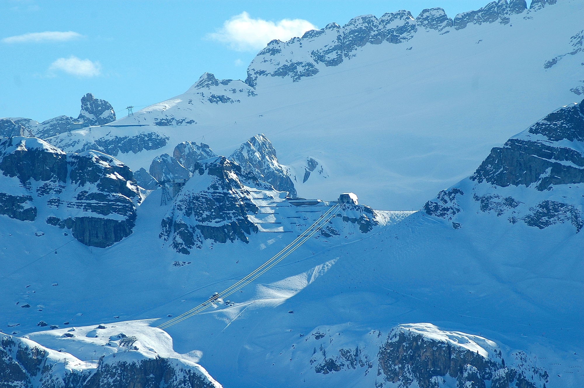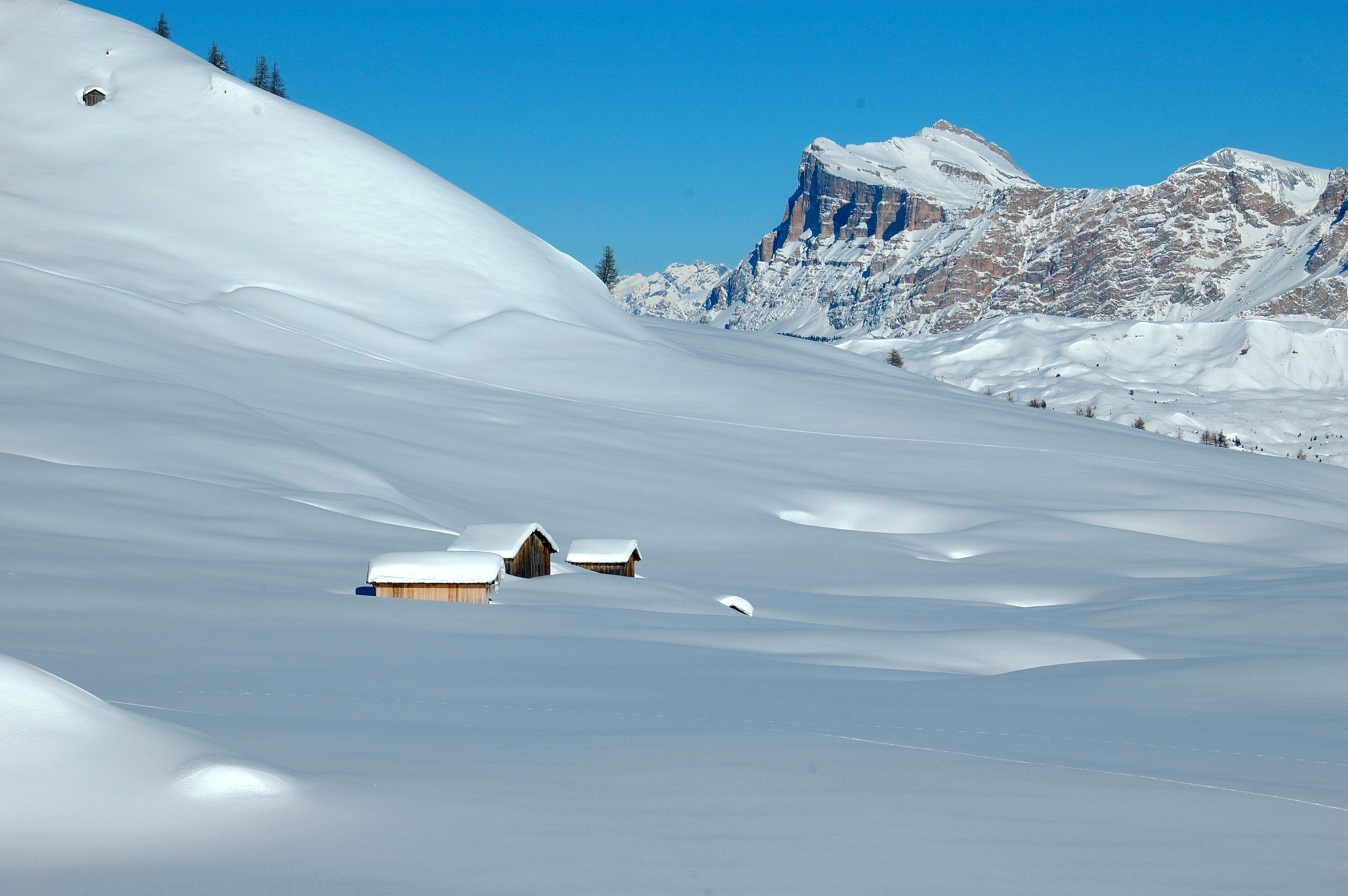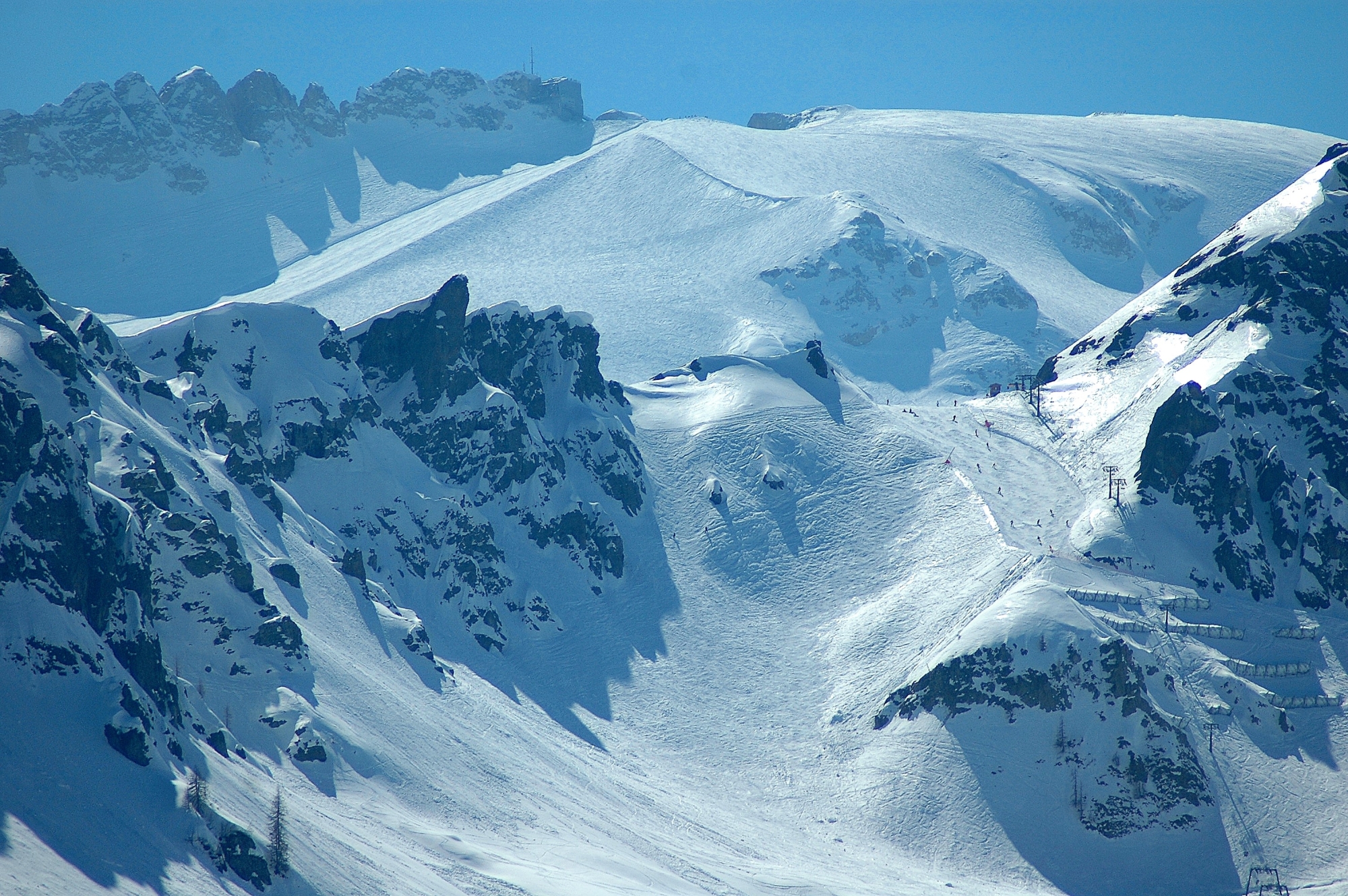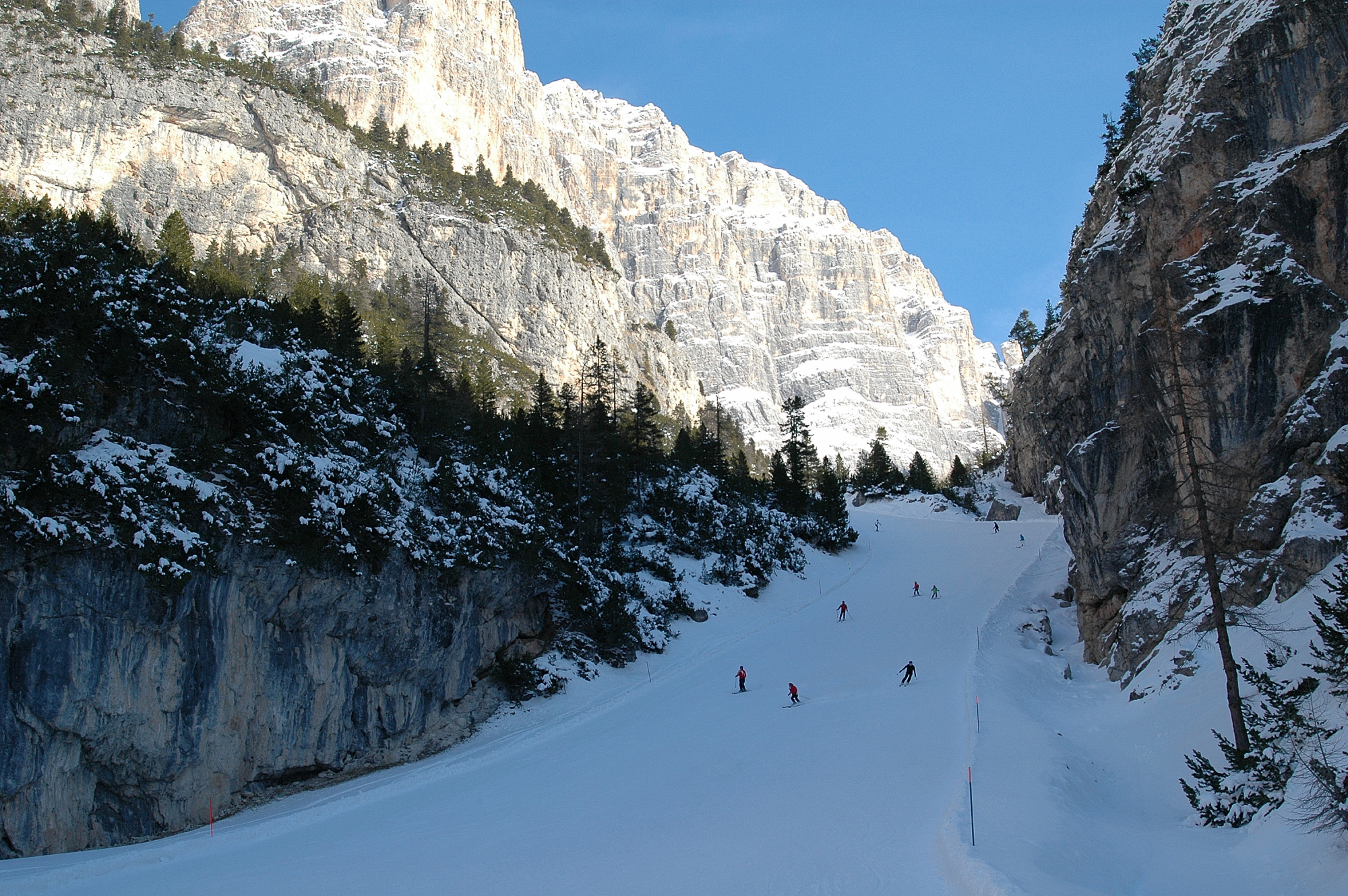 Skigebiet Falzarego Pass/Lagazuoi: Die Bergstation der Lagazuoi-Seilbahn (imposante Luftseilbahn ohne Stützen) befindet sich knapp unter den Gipfel des Lagazuoi (2778m); wer nicht auf die Marmolada fährt erreicht hier den höchsten Punkt der Runde. Das Bergpanorama gehört zu den allerschönsten der gesamten Dolomiten! Hier beginnt auch die magisch schöne Armentarola-Piste, die im unteren Teil auf die Scotoni-Hütte trifft und im Bereich der Capanna Alpina beim Pferdegespann endet.