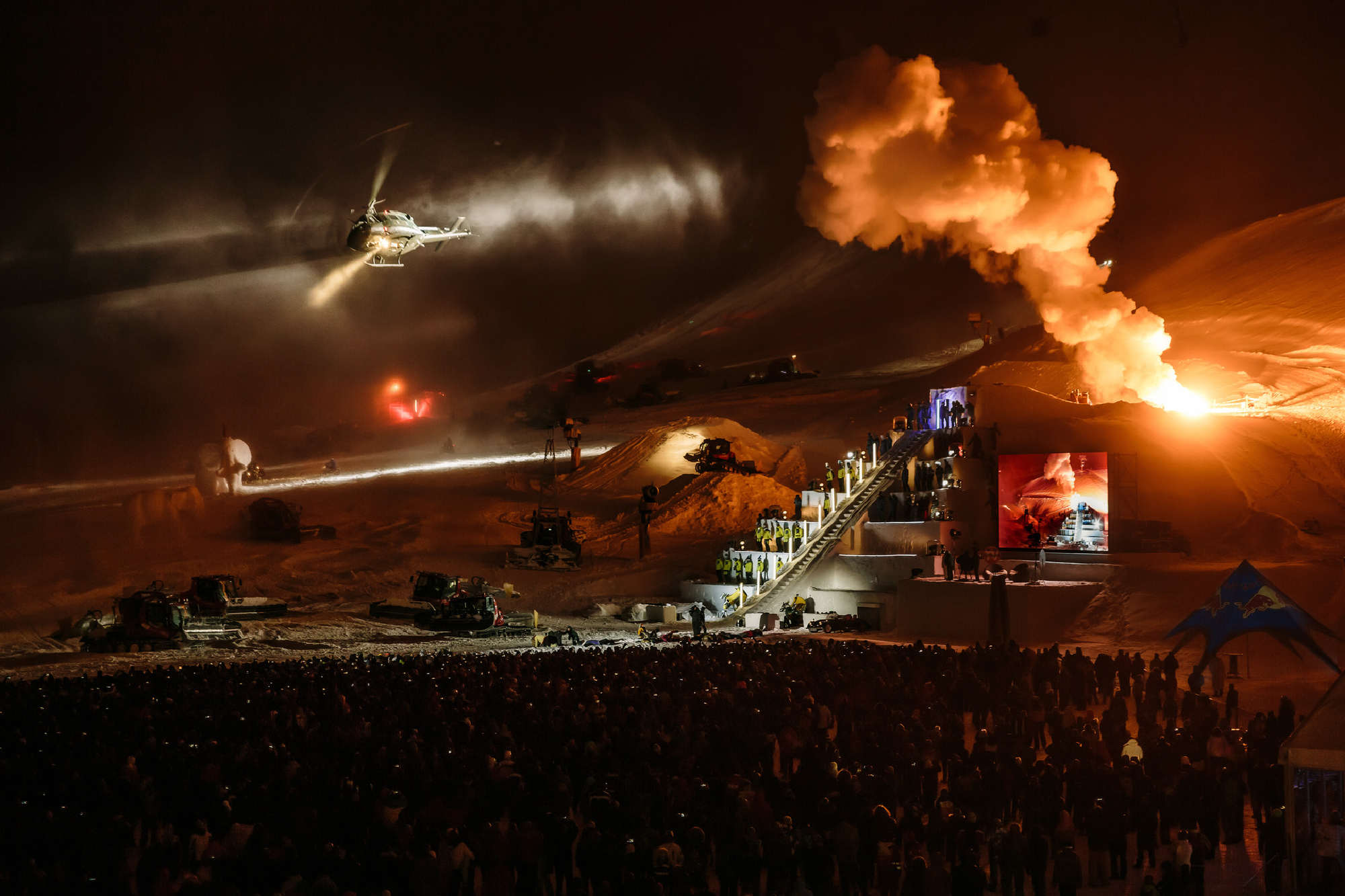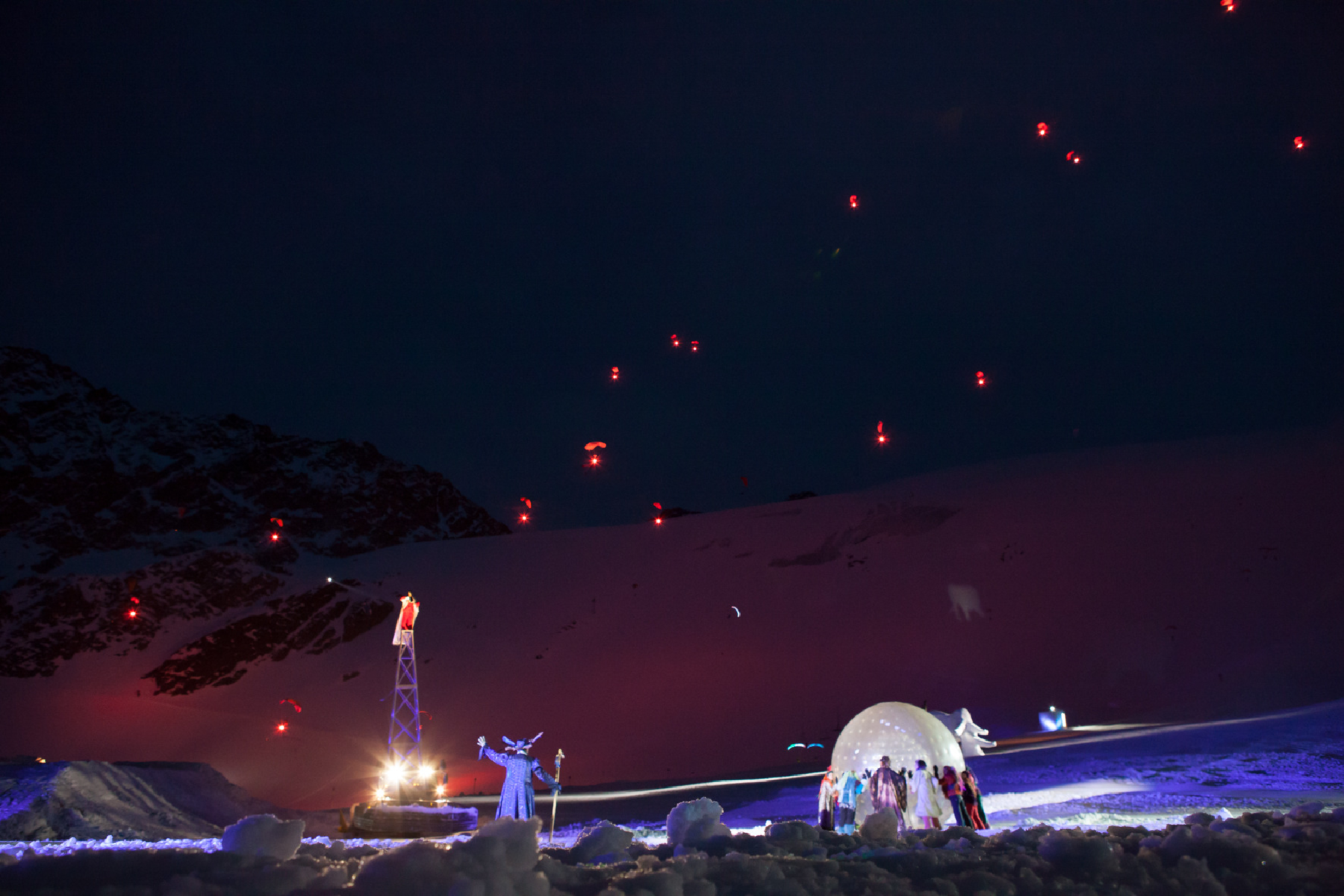 Für dieses historische Stück wird der Rettenbachgletscher in Sölden regelmäßig zur atemberaubenden Kulisse. Über 500 Teilnehmer wirken an der Aufführung mit, aufgeführt wird eine präzise Choreographie mit zahlreichen Hilfsmitteln: Neben den menschlichen Darstellern kommen Pistenbullys, Flugzeuge, Helikopter und Skidoos zum Einsatz. Außerdem gibt es spektakuläre Licht- und Toneffekte und Feuerwerkselemente.