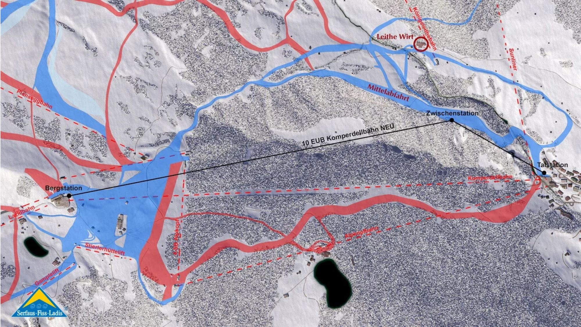 In zwei Bauphasen soll nun das größte Projekt in der Geschichte der Seilbahn Komperdell GmbH umgesetzt werden. Noch nie war die Seilbahn mit so einer großen Investitionssumme (über 50 Millionen Euro!) konfrontiert, auch logistisch wird eine Meisterleistung erforderlich sein. Die „alte“ Komperdellbahn, die ihren Dienst seit 34 Jahren ohne besondere Vorkommnisse erfolgreich getan hatte, wird nun gegen die neue 10er EUB Komperdellbahn (Einseilumlaufbahn) ausgetauscht.