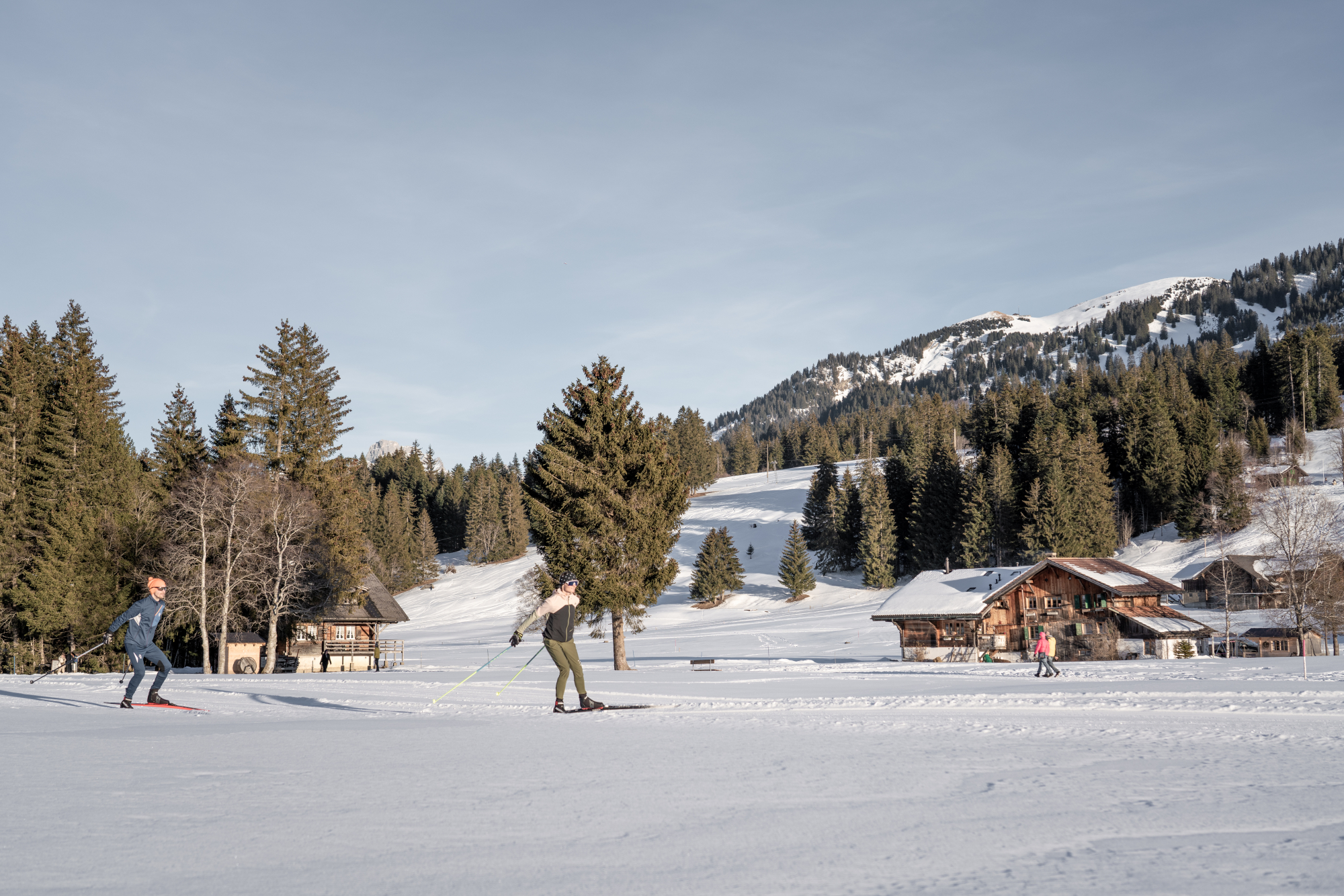 Gstaad ist einer der bekanntesten Wintersportorte in der Schweiz. Er liegt gemeinsam mit neun weiteren Chaletdörfern im Saanenland auf einer Höhe zwischen 1.000 und 1.400 Metern im Berner Oberland. Die Region besticht durch eine Mischung aus authentischer Tradition und schickem Charme. Gstaad gilt als eines der Top-Langlaufgebiete in der Schweiz und bietet über 70 km Loipen. In den vier Teilgebieten Saanenmöser/Schönried, Gstaad-Feutersoey-Gsteig, Lauenen und Turbach und Zweisimmen-Sparenmoos finden sich Strecken aller Schwierigkeitsstufen.