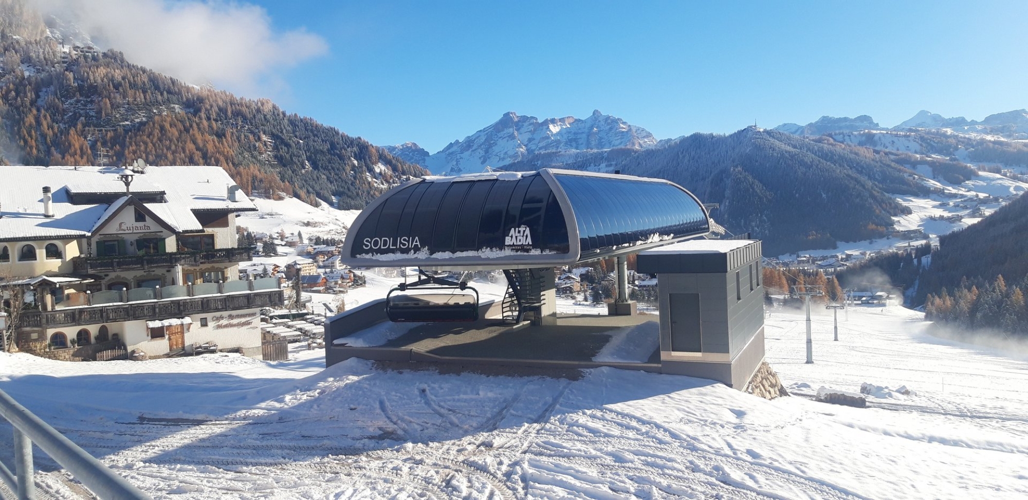 In Kolfuschg im Südtiroler Gadertal wird eine modern ausgestattete 8er-Sesselbahn einen bereits 30 Jahre alten 4er-Sessellift ersetzen. Die mit DirectDrive betriebene Bahn „Sodlisia“ verfügt über verriegelbare Schließbügel, Premiumpolsterung sowie Schutzhauben und wird den Beförderungskomfort im zur Sellarunde zählenden Skigebiet deutlich erhöhen. Während am Berg eine neue Premium Station im Design von Pininfarina errichtet wird, wird die Anlage im Tal in ein neu errichtetes Gebäude samt unterirdischer Garagierung integriert. Bei einer Länge von 785 Metern wird die 8er-Sesselbahn in Zukunft bis zu 3.600 Personen pro Stunde befördern. In Alta Badia werden diesen Winter zudem die zwei Sesselbahnen „La Brancia“ sowie „Costoratta“ zum Einsatz kommen, welche LEITNER bereits im vergangenen Jahr gebaut hatte. Da die italienischen Skigebiete aufgrund der Covid-Beschränkungen im letzten Winter geschlossen bleiben mussten, waren auch diese beiden Anlagen bislang noch nicht im Wintereinsatz.