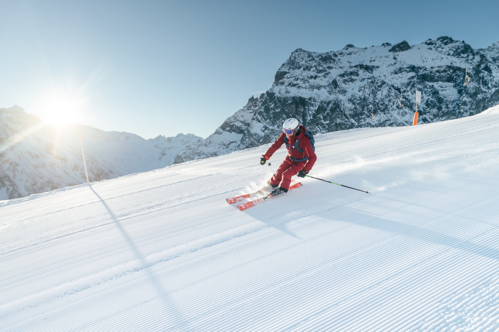 Das Montafon ist Dein Freeride-Hotspot der Extraklasse. Besonders in den Skigebieten Silvretta Montafon und Gargellen erwarten Dich unzählige Routen und unberührte Tiefschneehänge, die das Freeride-Herz höher schlagen lassen. Die hochalpinen Gebiete kombinieren spektakuläre Aussichten mit anspruchsvollem Gelände. So wird jede Abfahrt zu einem unvergesslichen Erlebnis! Egal ob Du bereits sicher und oft im Gelände unterwegs bist, oder erste Schwünge abseits der Pisten wagst – in diesen zwei Skigebieten findest Du ideale Bedingungen, um Dir den Pulverschnee um die Ohren wehen zu lassen.