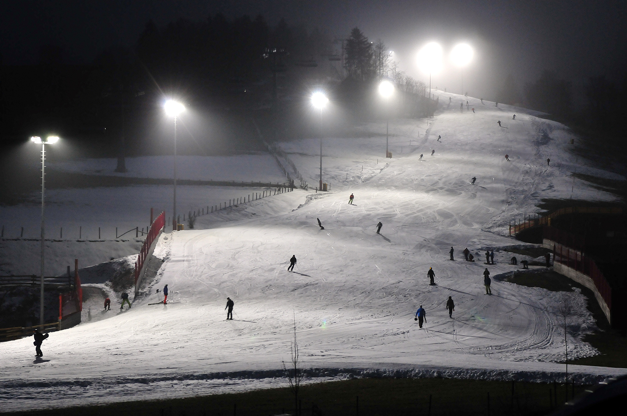 Jeden Dienstag und Freitag wird in Winterberg im Sauerland die Nacht zum Tag gemacht: Dann drehen sich von 18:30 bis 22 Uhr bis zu neun Lifte und 14 Pisten mit einer Gesamtlänge von 8 km werden beleuchtet! Jede dieser Abfahrten ist beschneibar, also kann man hier den ganzen Winter über auch beim Nachtskilauf gute Pistenbedingungen erwarten. Ein Abendticket in Winterberg kostet in der Saison 2024/25 31 Euro für Erwachsene und 20 Euro für Kinder.