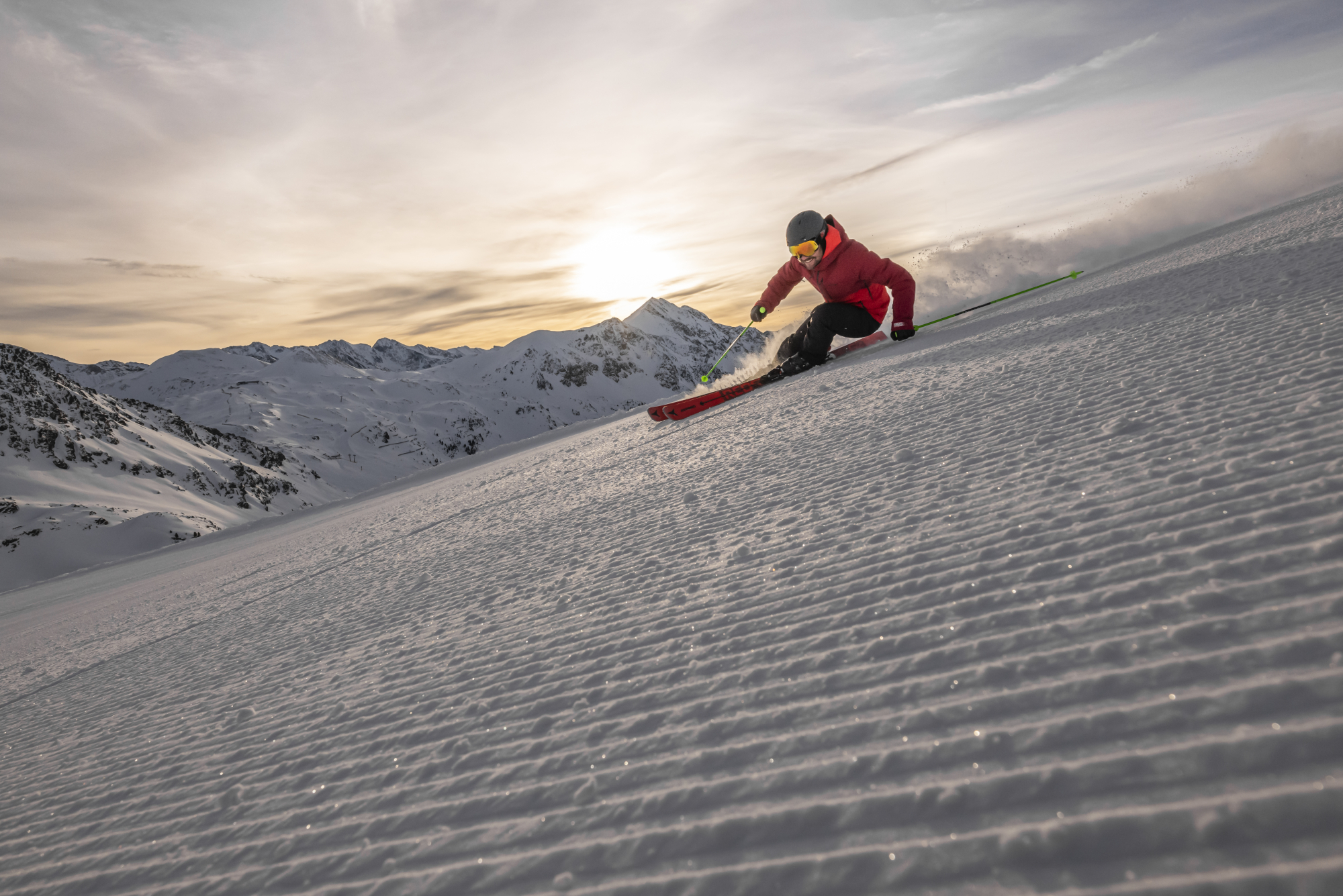 Die Sonne scheint, die Temperaturen steigen und die Hütten laden schon zu einem Drink im Liegestuhl ein. Es wird höchste Zeit, noch einmal ein paar Abfahrten im feinsten Firn zu genießen. Der perfekten Lage inmitten eines Bergmassivs, das mit 100 Kilometer Pisten kreisförmig das Ortszentrum umgibt, verdankt Obertauern seinen Ruf als Skimetropole Österreichs. Bis auf 2.313 Meter Höhe reicht das Schneevergnügen, fantastische Ausblicke inklusive. „Ski in Ski out“ gilt an jedem Punkt des Ortes, die Pisten liegen immer nur wenige Schwünge von der Haustür entfernt.