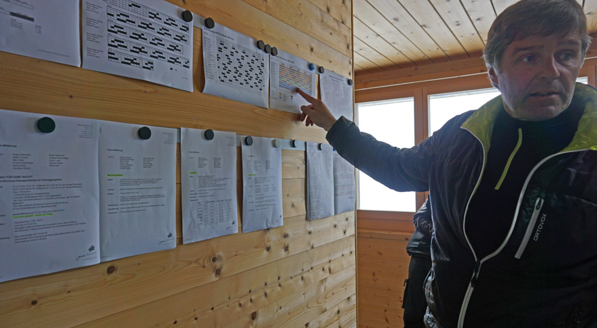 Wenn es dann doch zu einem unkontrollierten Lawinenabgang kommt, gibt es in der Zentrale der Pistenrettung eine Checkliste, die abgearbeitet wird. Gemeldet wird ein Lawinenabgang in der Regel per Telefon, dann werden Informationen wie Ort und Anzahl der Verschütteten abgefragt. Diese Meldung wird dann weitergegeben an die Rega, die Schweizerische Rettungsflugwacht. Meist geht dann erstmal eine Person mit dem Nötigsten los und schaut sich die Lage vor Ort an, um Meldung zu geben, was gebraucht wird. “Meistens stellt er fest, dass nichts ist”, berichtet Wadi und fügt hinzu: “Gott sei Dank!” Kommt es aber doch zu einem Einsatz, können je nach Größe der Lawine bis zu 200 Personen bei einem Notfall beteiligt sein.