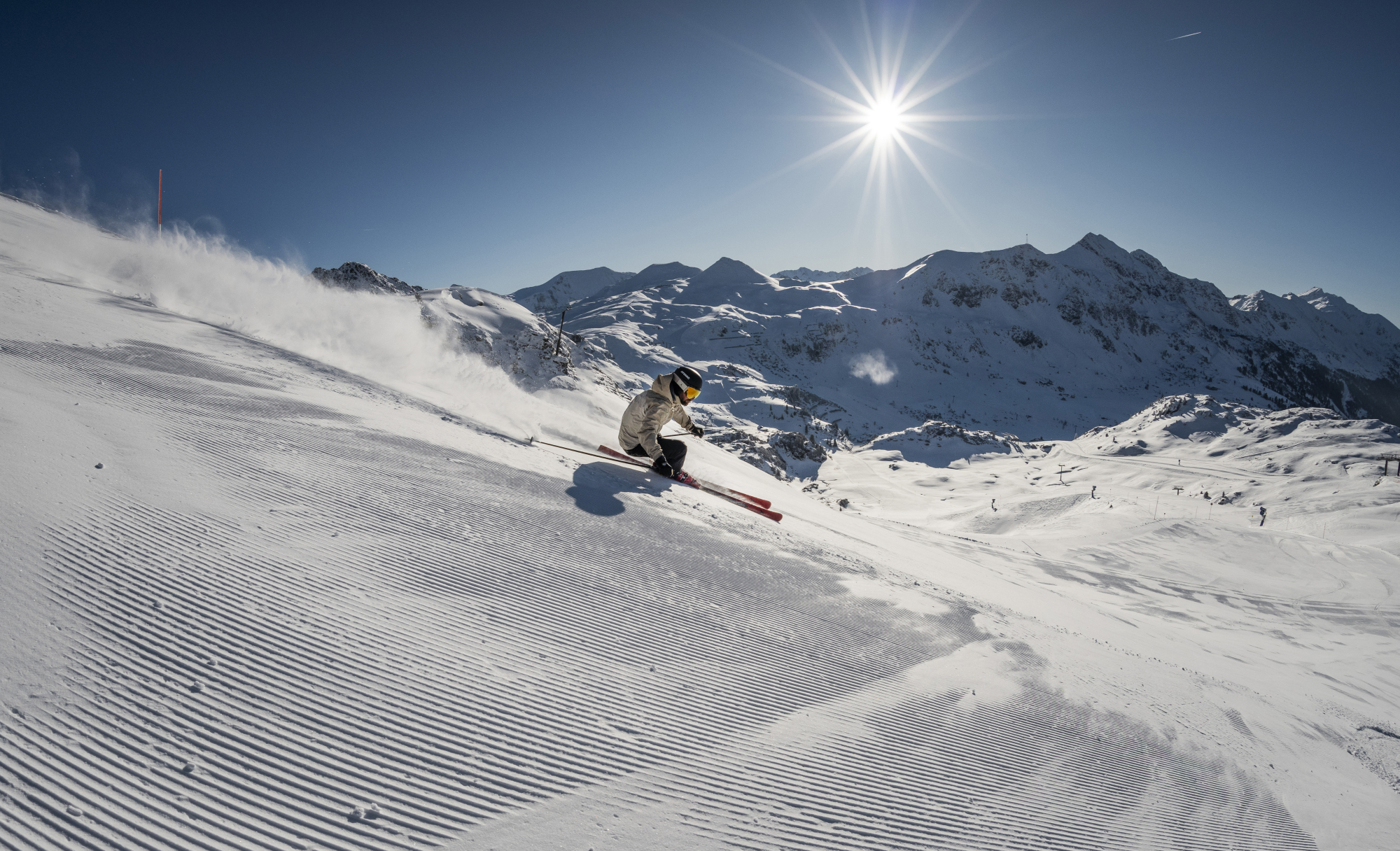 Die natürliche Schüssellage der Berge sorgt dafür, dass den ganzen Tag über sonnige Abfahrten möglich sind. Vom ersten Schwung am Morgen bis zur letzten Abfahrt am Abend finden Anfänger, Fortgeschrittene und Könner genau die Pisten, die zu ihnen passen.