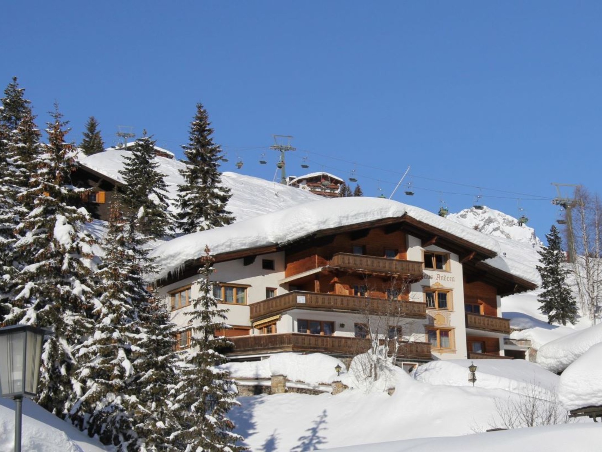 Das Appart Andrea befindet sich in zentraler Lage (Ortszentrum ca. 5 Gehminuten), direkt neben einer Sesselbahn und einer Skipiste. Sie können hier von und zum Haus mit den Skiern fahren (Ski in - Ski out) ! Für weitere Ausflüge hält in regelmäßigen Abständen, noch keine 100 Meter vom Haus entfernt, der blaue Lechner Ortsbus, der es Ihnen erlaubt ganz autofrei Lech und die umliegenden Ortschaften zu erkunden.