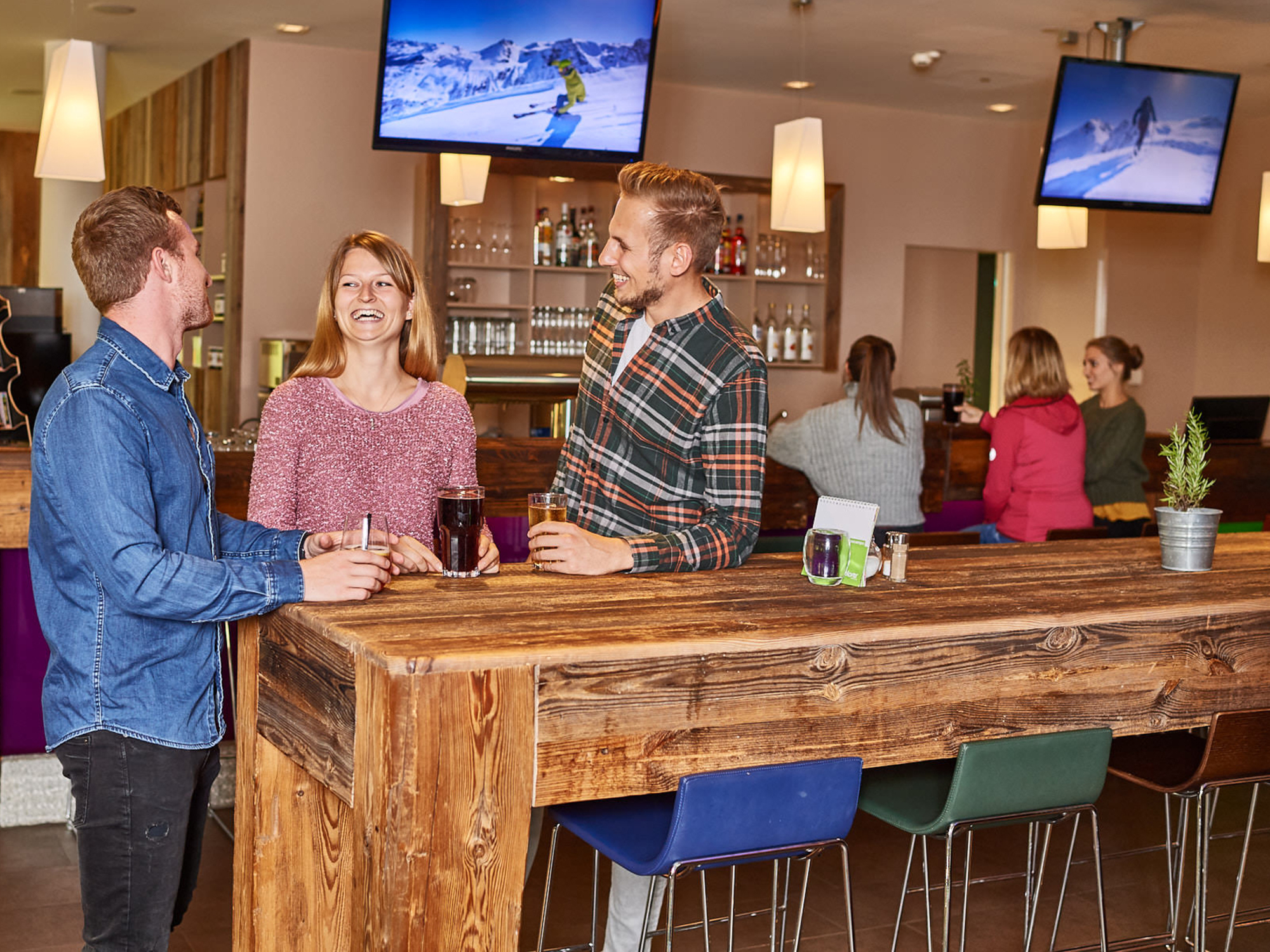 Die trendigen Zimmer bieten auf 21m² viel Raum zum Wohlfühlen. Neben dem bequemen Doppelbett ist das Highlight die große Fensterbank mit bequemen Kissen auf der es sich traumhaft auch zu zweit entspannen lässt. Die Explorer-Zimmer sind funktionell ausgestattet mit vielen Ablageflächen, Haken, Regalen und Schränken – perfekt für Gäste, die mit großem Sport-Equipment unterwegs sind. Außerdem gibt es einen großen Safe, in dem alle Wertsachen sicher aufbewahrt werden können. Die Zimmer sind mit einem Flatscreen-TV ausgestattet. Highspeed WLAN ist im gesamten Haus und auf allen Zimmern gratis verfügbar! Das Explorer-Badezimmer ist ein großzügiger Raum mit geräumiger Dusche und einem farbenfrohen Look, der gute Laune macht.