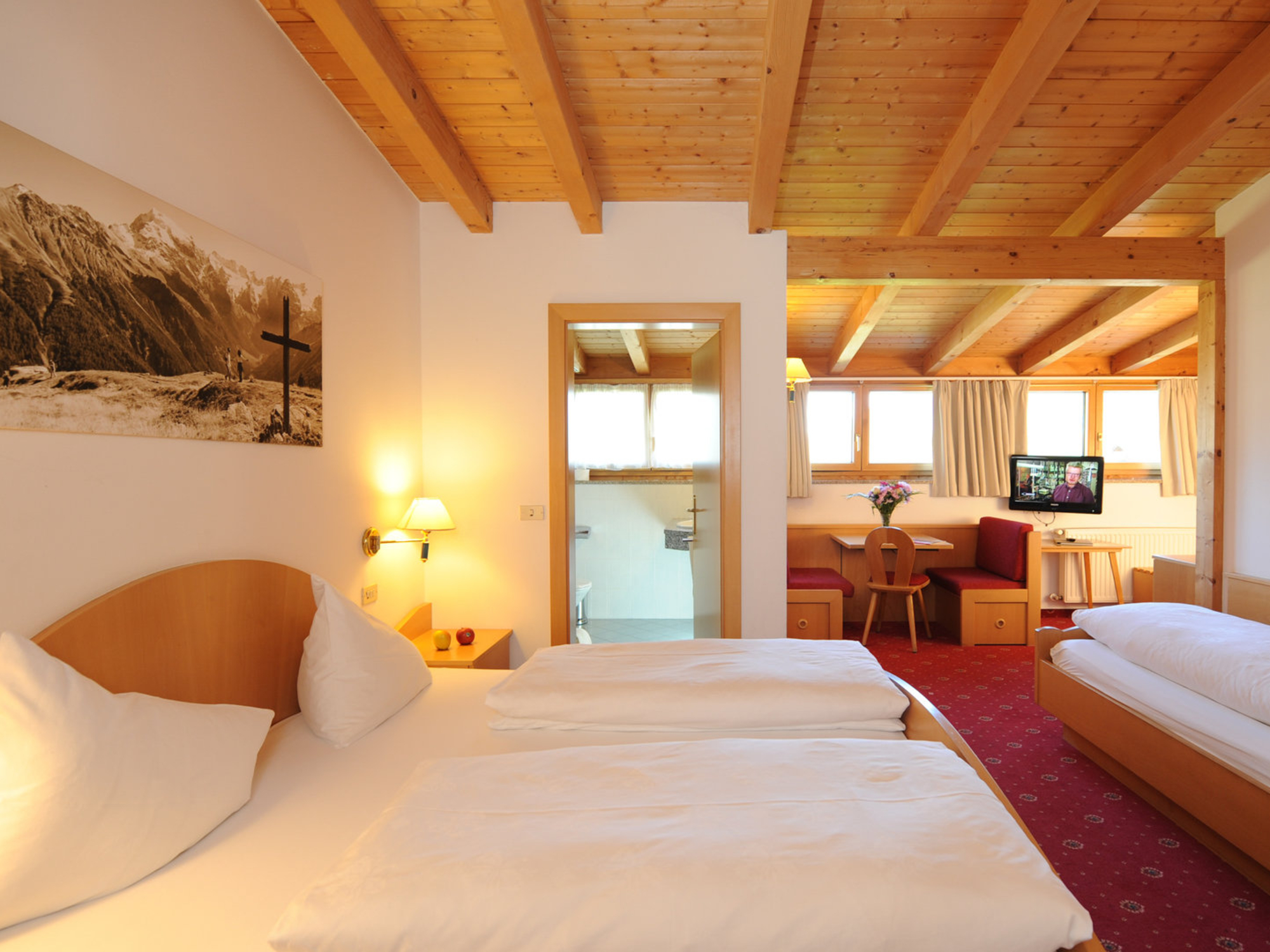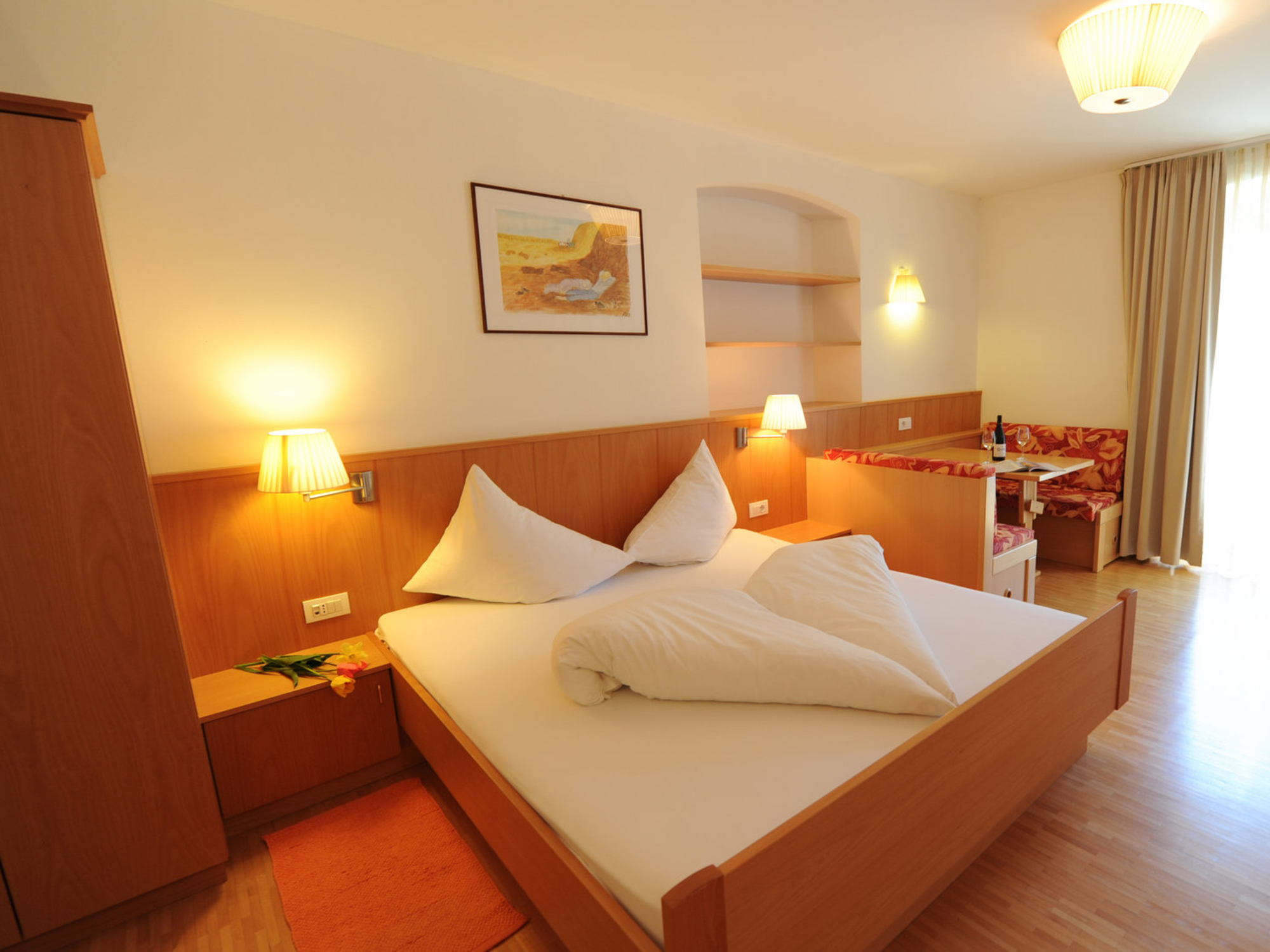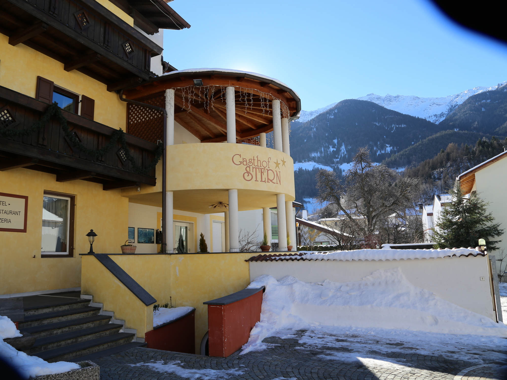 Der Gasthof Stern hält für seine Gästen ein reichhaltiges Frühstücksbuffet mit frischen Südtiroler Produkten bereit und am Abend werden Sie mit einem Menü nach Wahl verwöhnt. Wenn Sie mittags schon von der Ski- oder Snowboardtour zurück sind, finden Sie auf der Speisekarte sicherlich die richtige Stärkung. Die Original-Stern-Pizza gibt es von 17.00 bis 22.30 Uhr direkt von Hausherrn Michael. Behagliches Wohnvergnügen so richtig zum Wohlfühlen. Jedes der komfortablen und sonnigen Zimmer ist gemütlich und geschmackvoll eingerichtet, mit dem Komfort, der zum entspannten Wohnen gehört: Bad/Dusche, WC, geräumiger Balkon, SAT-TV, Telefon. Wir sind sicher, Sie werden sich ganz wie zu Hause fühlen! Die Hausgäste erhalten Ermäßigungen auf alle Wellnessangebote wie Massagen, verschiedene Heil- und Relaxbäder und Beautyanwendungen Sportwell in Mals. Fragen Sie nach der "Sportwellcard".