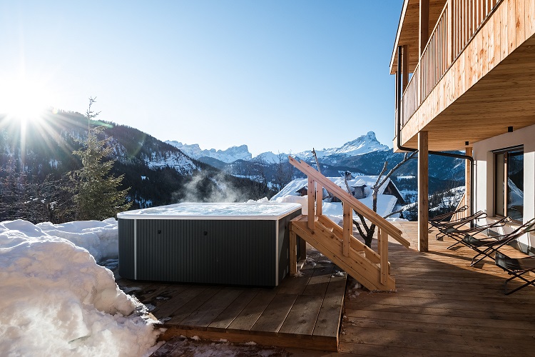 Sie finden das familiengeführte Hotel Ciurnadù am Sonnenhang von Wengen auf 1.540 m Höhe, am Fuße des mächtigen Heiligen Kreuzkofels. Verkehr, Lärm und Stress sind hier nur mehr vage Erinnerungen, und das Leben fließt gemächlich, nach dem Rhythmus der Natur mit ihren Geräuschen, Gerüchen und ihrer Farbenpracht. Neue alpin Wellnessoase mit Blick auf den Dolomiten, Jacuzzi im Garten mit atemberaubender Aussicht.