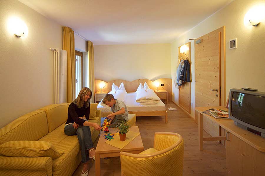 Um ein angenehmes Ambiete zu schaffen, hat man sich bei der Planung der Prinzipien des Feng Shui besonnen, der althergebrachten Lehre der optimalen Gestaltung des Raumes. Die Feng Shui Elemente für Ruhe und Harmonie bilden die Grundlage für die Struktur der Wohnkultur des Hauses. In der Lehre des Feng Shui hat alles seinen Daseinswert. Formen, Farben und Materialien beeinflussen unsere inneren Energiebahnen und steigern somit unser Wohlbefinden. Dementsprechend sind auch die sehr geräumigen Zimmer eingerichtet. Zudem genießen Sie die Annehmlichkeiten eines großzügigen Badezimmers mit Tageslicht, Bodenheizung und einer Wohnecke mit großer Couch. Fast alle Zimmer haben einen Balkon mit Dolomitenblick.