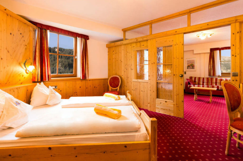 Die gemütlichen Zimmer im Wellnesshotel Schneeberg sind alle modern und im Tiroler Stil ausgestattet. Damit es Ihnen im Urlaub an nichts fehlt, sind sie mit Dusche/WC, Sat-TV, Telefon und teilweise Whirl-Wanne und Balkon ausgestattet. Über einen getrennten Wohnbereich verfügen die geräumigen, ca. 50 m² großen Suiten, die dadurch genügend Platz für die ganze Familie bieten. Weiters stehen Ihnen auch komplett eingerichtete Appartements zur Verfügung, die zusätzlich mit einer Kochnische ausgestattet sind.