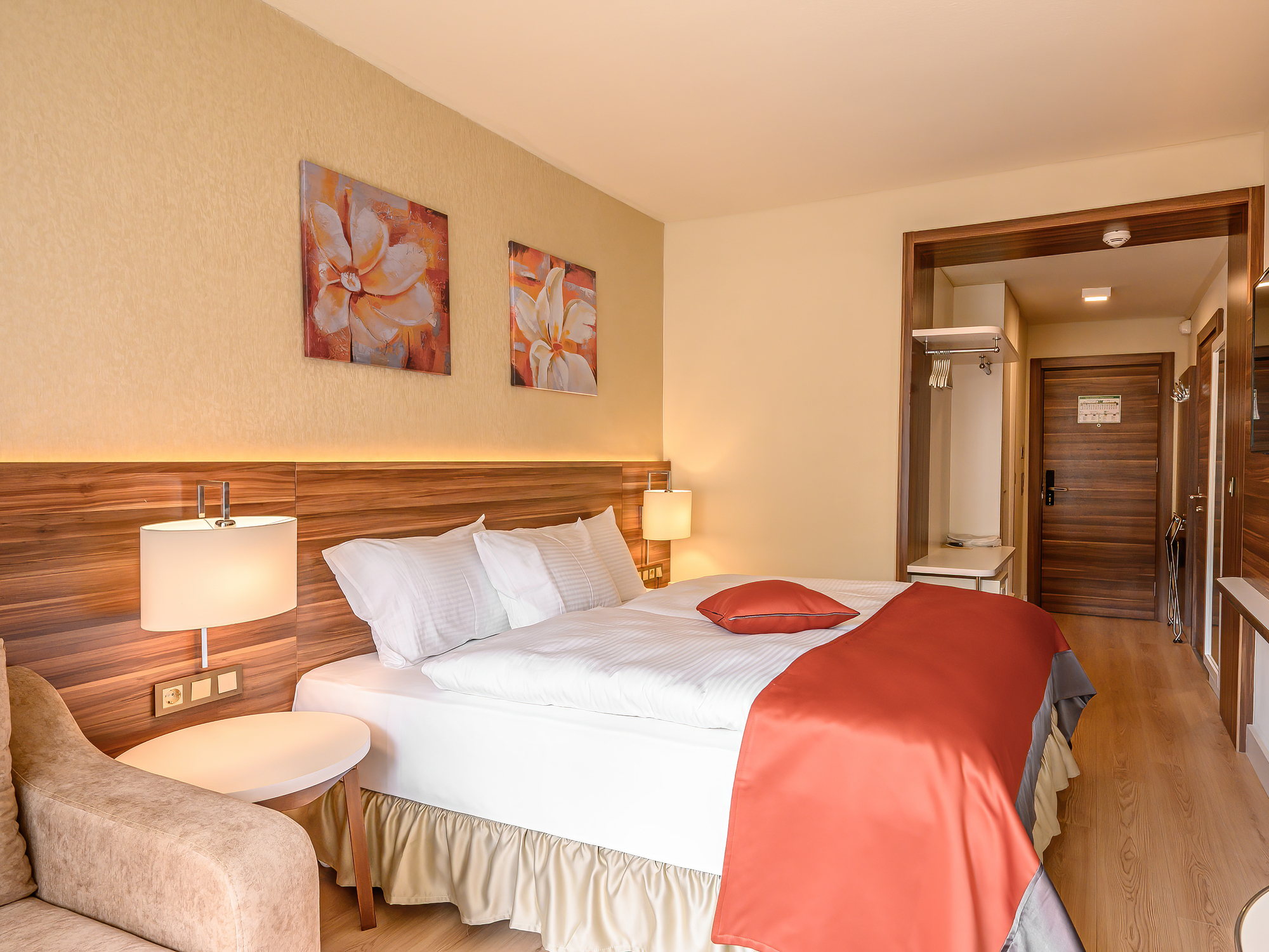 Unser Hotel verfügt über insgesamt 72 Zimmer. Alle Hotelzimmer wurden von 2020 bis 2023 renoviert und sind mit modernen Möbeln und Materialien ausgestattet, damit sich unsere Gäste wie zu Hause fühlen. Jedes Zimmer ist für zwei Personen plusein Kind unter 15 Jahren geeignet.