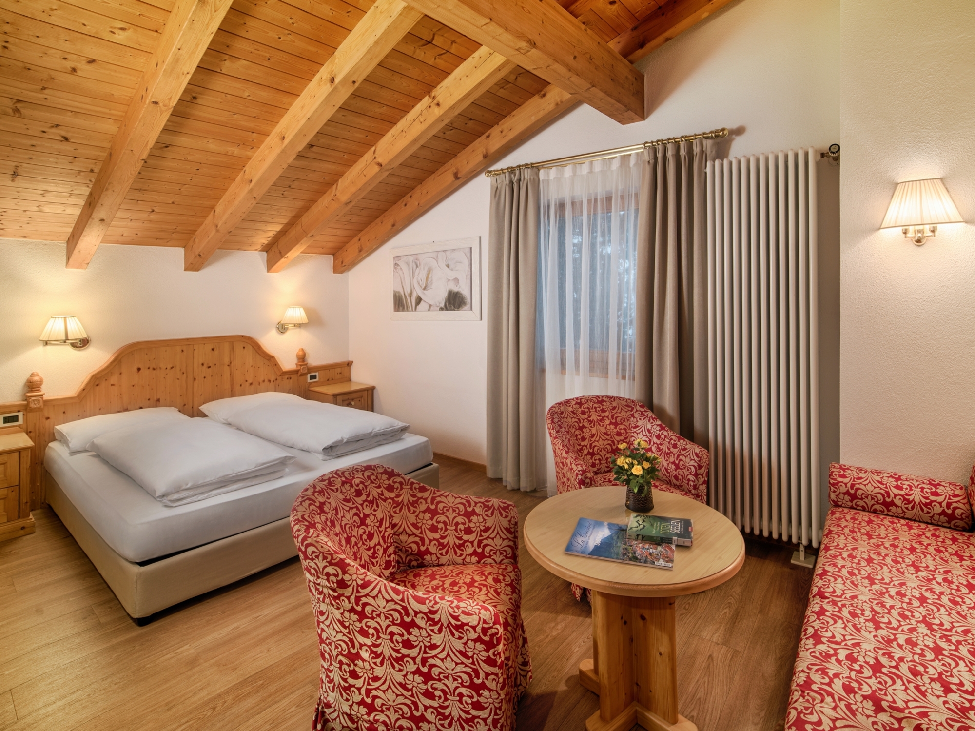 Genießen Sie die Ruhe und Gemütlichkeit der Villa Eden an einem der sonnigsten und dazu zentralsten Plätze Corvaras. Heute wird die Villa Eden von der dritten Generation der Familie Bassot geführt. 1951 errichtet, ist das Hotel während der letzten Jahre von Grund auf renoviert worden. Die Einrichtung ist im Tiroler Stil gehalten und wird von der Familie Bassot liebevoll und bis ins kleinste Detail gepflegt. Alle Zimmer verfügen über Bad oder Dusche, WC, Föhn, Sat-TV, Telefon mit Direktwahl, einen elektronischen Safe und Balkon. Ein wunderschöner Garten mit kleinem Spielplatz umgibt das Haus. Bereits dreimal wurden die Bemühungen der Gastgeber mit der Anerkennung "Corvaras schönstes blumenbeschmücktes Haus" ausgezeichnet.