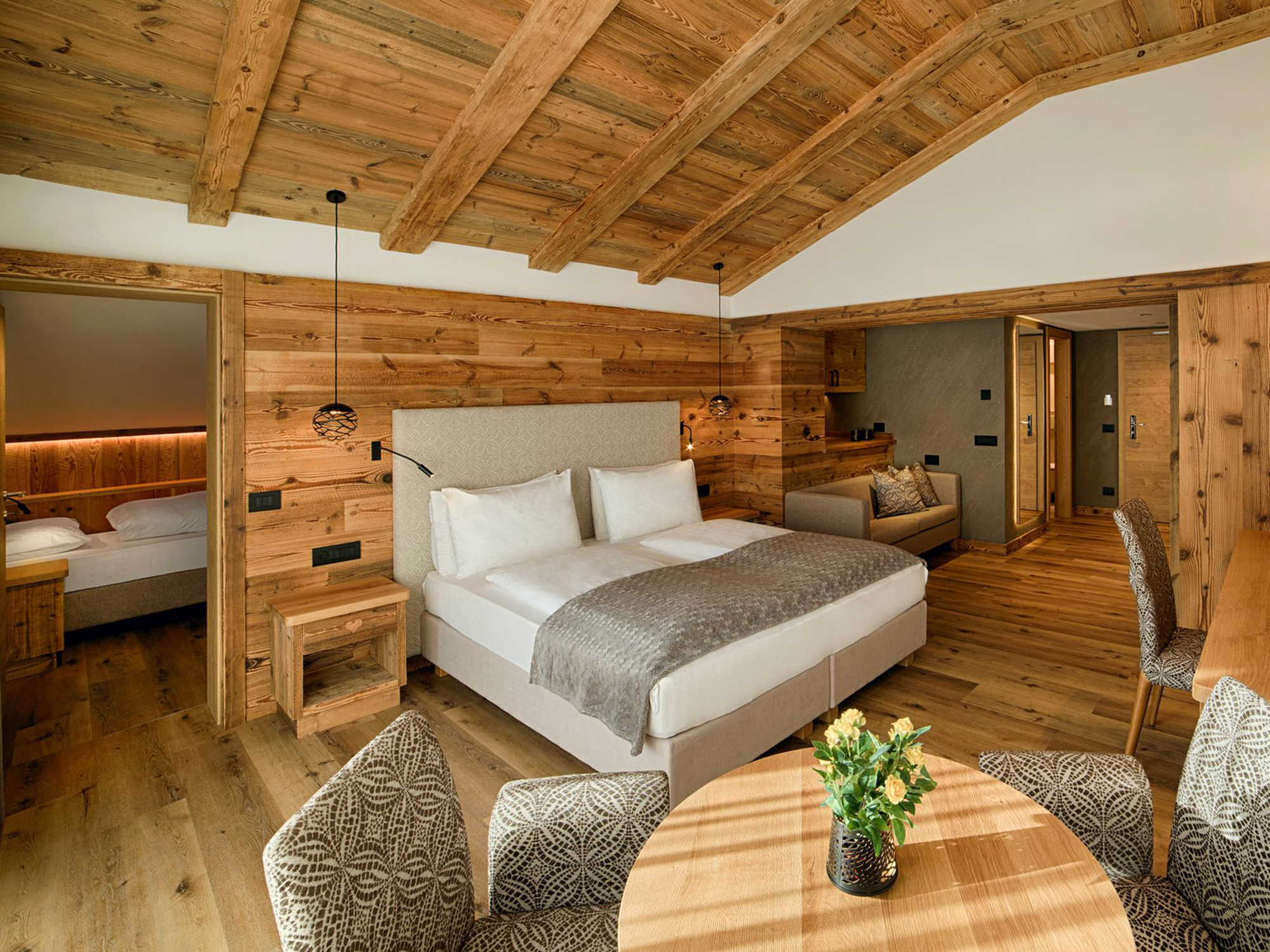 Direkt vom Zimmer aus erreichen Sie mit dem Lift den gemütlichen Wellnessbereich, der nach einem aktiven Tag zum Entspannen einlädt. Hier stehen Ihnen finnische Sauna, Kaltwasserbecken, Kneipp-Bad, Whirlpool und Ruheraum zum Relaxen zur Verfügung.