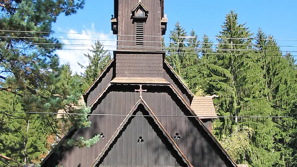 Außenansicht der Schrotholzkirche St. Friedrich in Bílá , © Martin Kovár, Wikimedia Commons (CC BY 3.0)