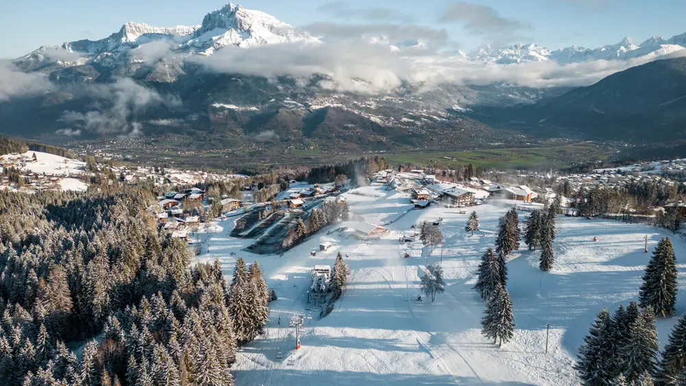 Das Skigebiet von Combloux liegt in den Hochsavoyen und ist 4 km von Megève und 30 km von Chamonix entfernt. Vom Ort aus hat man einen fantastischen Blick direkt auf den Mont Blanc.