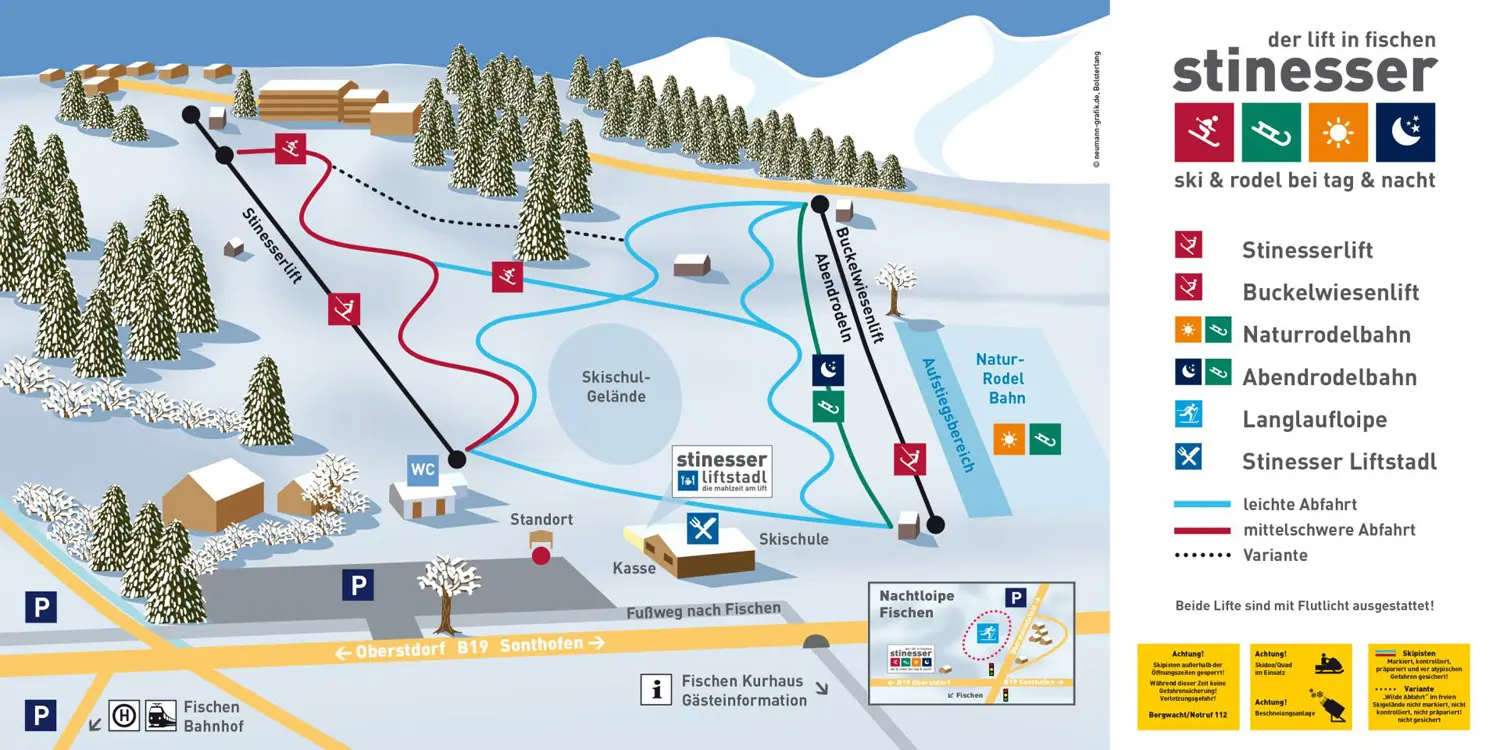 Fischen ist eines der fünf Hörnerdörfer und liegt in der Nähe von Oberstdorf und des Kleinwalsertals. Das macht Fischen zu einer Art "Vorort" im Oberallgäu, denn die großen Oberallgäuer Skigebiete sind innerhalb von zehn Kilometern zu erreichen. Das Skigebiet in Fischen, die Stinesser Lifte, sind besonders für Anfänger und Familien geeignet.