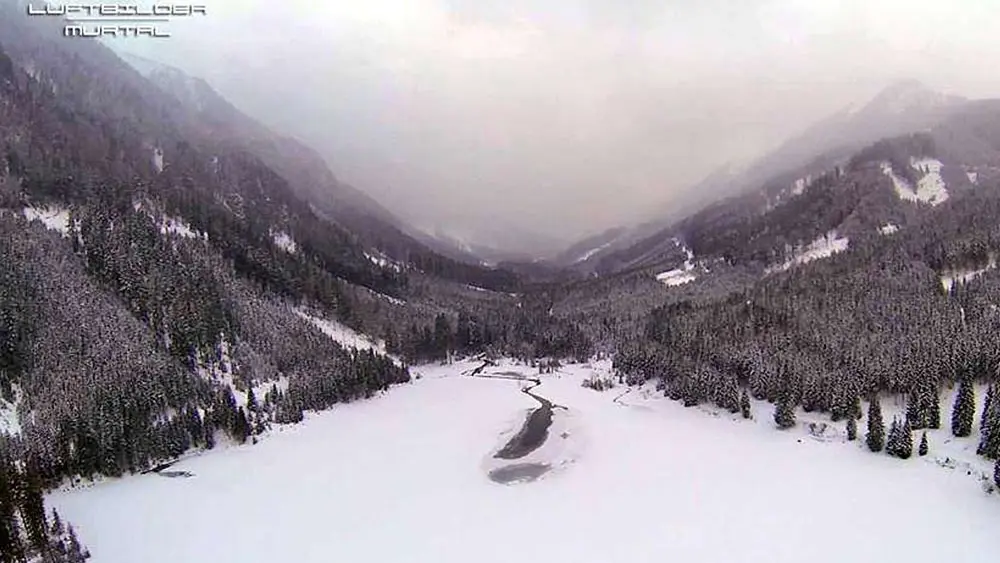 Luftaufnahme des Ingeringsees bei Gaal im Winter , © Luftbilder Murtal, Wikimedia Commons (CC BY-SA 3.0)