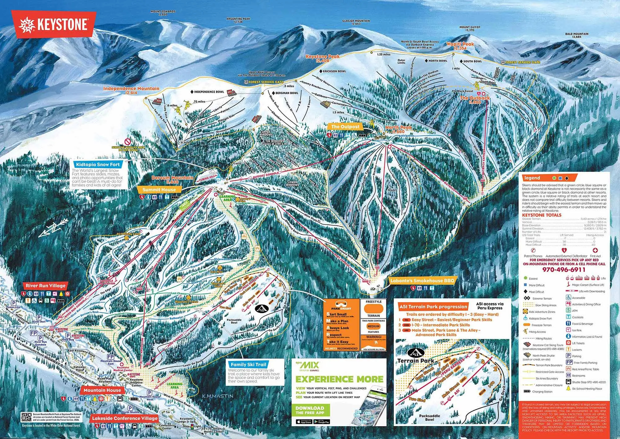 Ein ganz besonderes und unvergessliches Abendvergnügen ist das Skilaufen und Snowboarden bei Flutlicht, wobei Keystone das größte beleuchtete Nachtskigebiet in Colorado ist. Natürlich bietet das Keystone Resort auc Alternative zum Skifahren: Im Adventure Park gibt es eine Tubingbahn, außerdem kann man im Skigebiet Ski Biken.