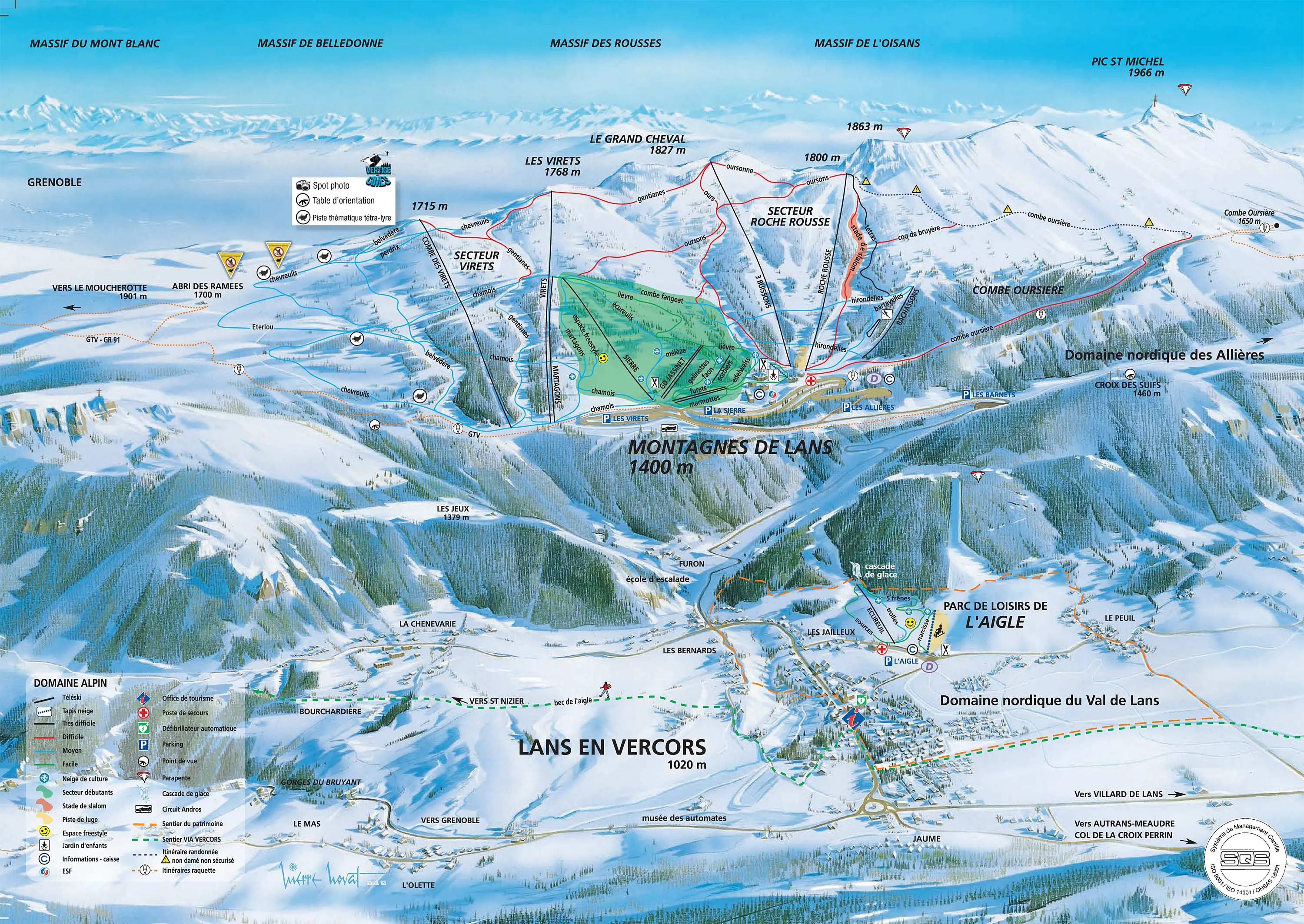Unweit von Grenoble findet man eine wunderschöne subalpine Landschaft, die seit den 1970er Jahren sogar den Status eines Nationalparks hat. Inmitten des Areals, das von Bergkämmen und Tälern durchzogen ist, liegt auf einer Höhe von 1.070 - 2.150 m das mit 30 Pistenkilometern eher kleine Skigebiet Lans-en-Vercors.