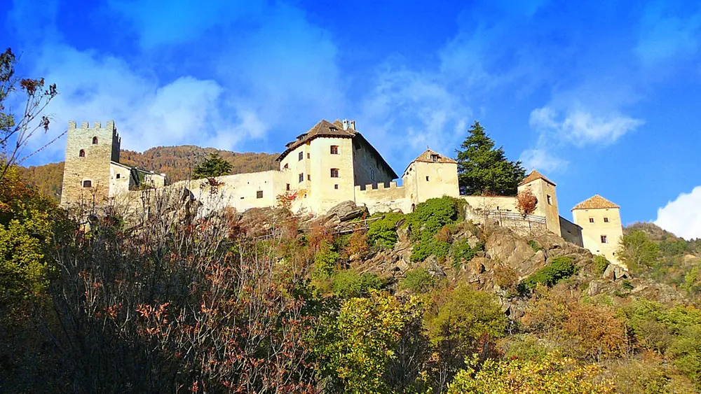 Blick von unten auf Schloss Juval in Naturns © F Delventhal, Wikimedia Commons (CC BY 2.0)