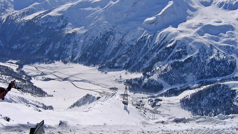 Blick von oben auf Lifte und Pisten am Schnalstaler Gletscher © qwesy qwesy, Wikimedia Commons (CC BY 3.0)