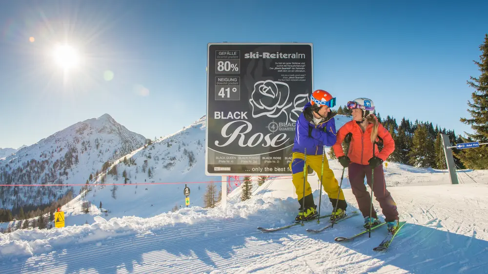 "Black Quartett" nennen sich die vier schwarzen Pisten auf der Reiteralm. Wer etwas auf sich hält, muss die vier Pisten mit den Namen Black Queen, Black Power, Black Rose und Black Horse meistern.