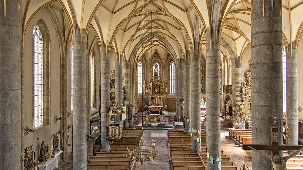 Innenraum der Pfarrkirche Mariä Himmelfahrt in Schwaz © WOKRIE, Wikimedia Commons (CC BY-SA 4.0)