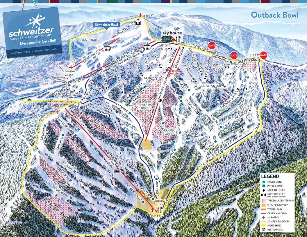 Das Skigebiet liegt im Norden Idahos fast schon an der kanadischen Grenze. Mit insgesamt 2.900 Hektar gehört es zu den größten Skigebieten Nordamerikas. Modernste Lifte sorgen für einen angenehmen Aufstieg mit so gut wie keinen Wartezeiten. Insgesamt gibt es 92 Pisten in allen Schwierigkeitsgraden. Das Schweitzer Mountain Resort überzeugt außerdem mit hervorragenden Tiefschneepisten, die durch den Wald führen.