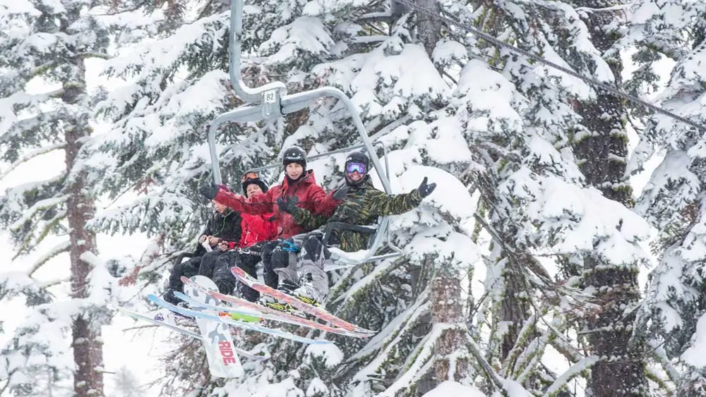 Von der Base Lodge und den Parkplätzen aus kommt man mit dem Grandview Express, einer kuppelbaren Vierersesselbahn hinauf zum höchsten Punkt des Skigebiets – dem Huckleberry Mountain. Mit einer Höhe von fast 2.700 m hat man hier oben nicht nur eine grandiose Aussicht. Geübte Skifahrer stürzen sich hier in die steilen Waldpisten, während genussvollere Fahrer die längste Piste des Resorts Sugar'n'Spice bevorzugen.