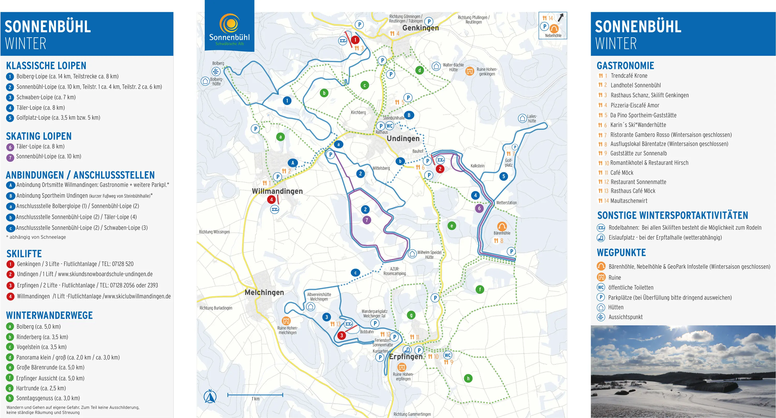 In Sonnenbühl und der näheren Umgebung sich weitere Wintersportmöglichkeiten - 50 Loipenkilometer, 17 km Winterwanderwege und Rodelbahnen.