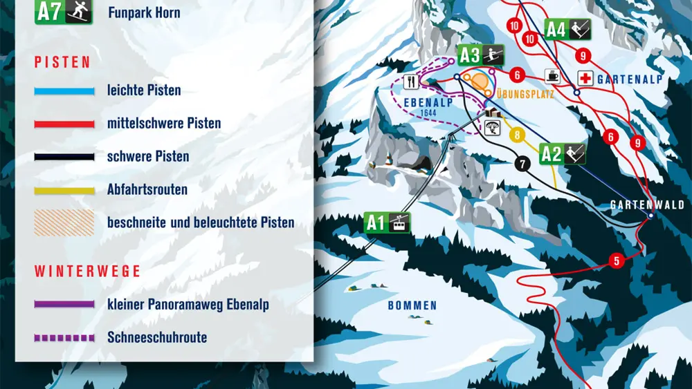 Beleuchtete Nachtskipisten auf der Ebenalp
