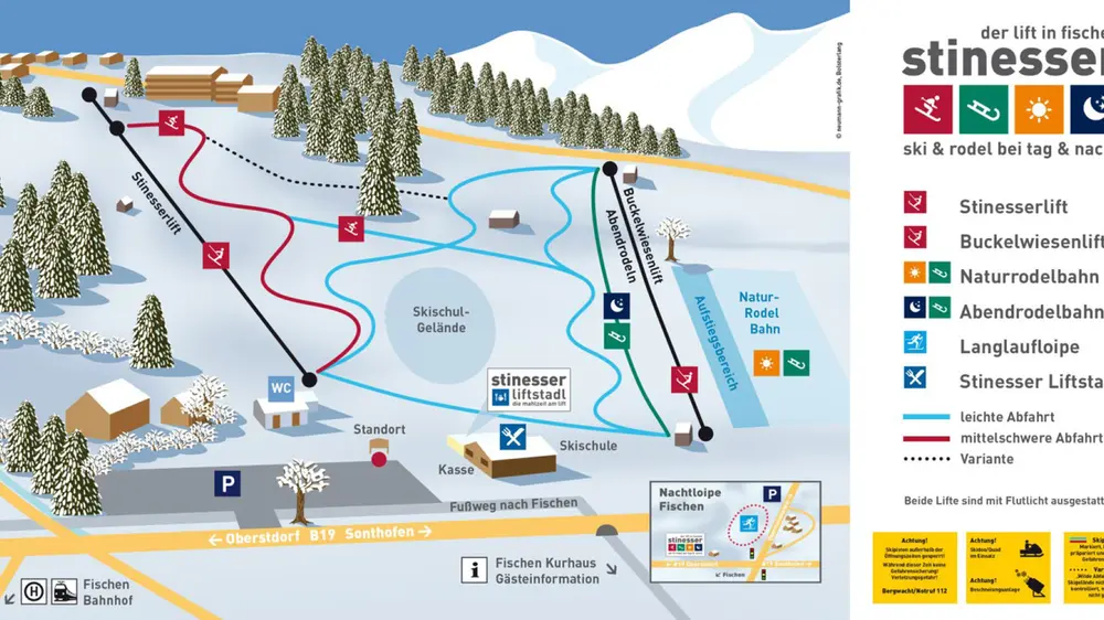 Skifahrer auf der Piste am Fischingerlift