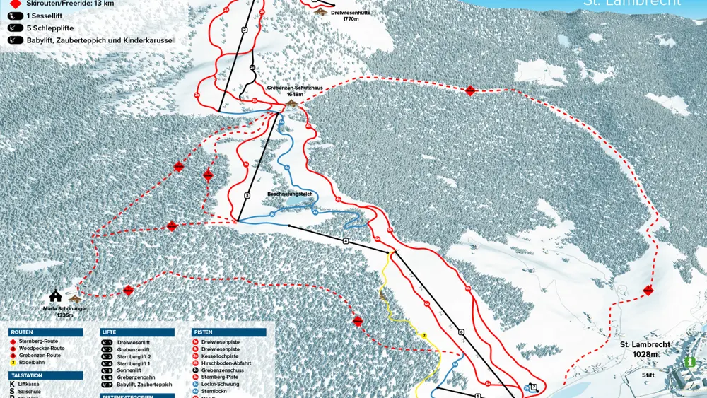 Frisch präparierte Piste am Grebenzen