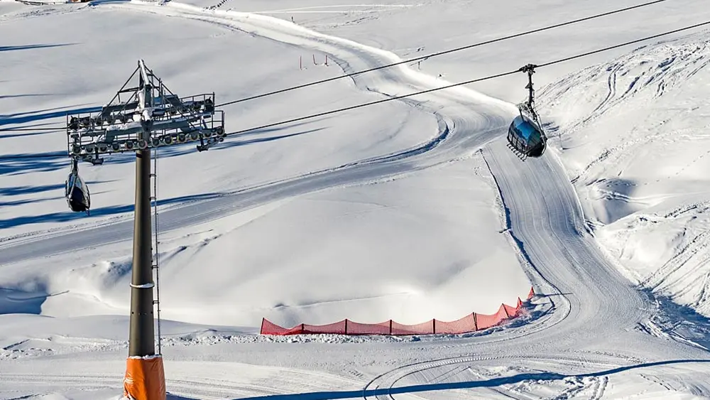 Blick auf Seilbahn und Piste im Skigebiet Almenwelt Lofer