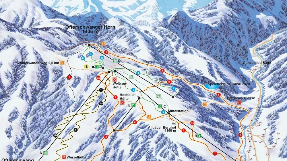 Blick auf die Pisten und Lifte im Ofterschwanger Horn