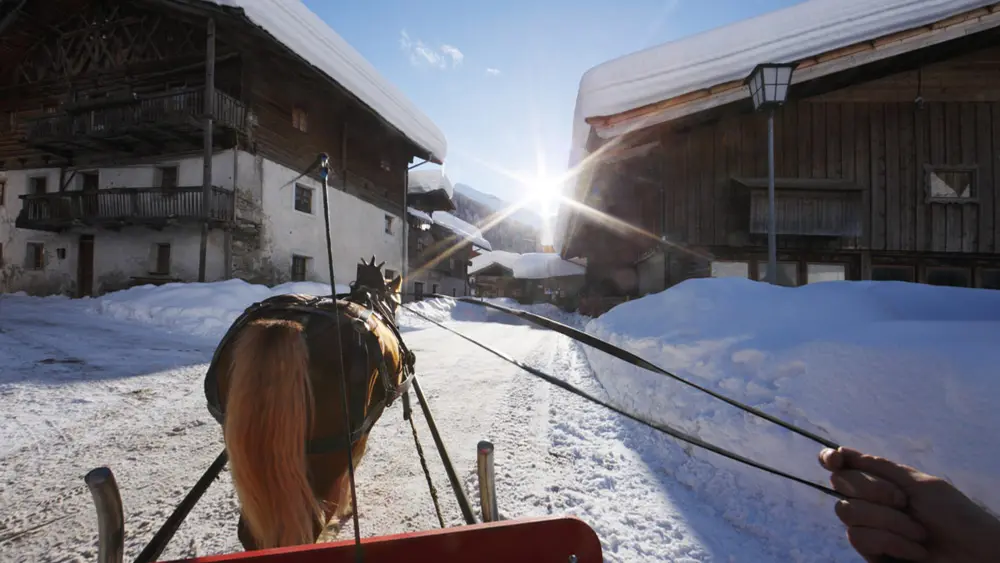 Pferdeschlittenfahrt durch Pfelders
