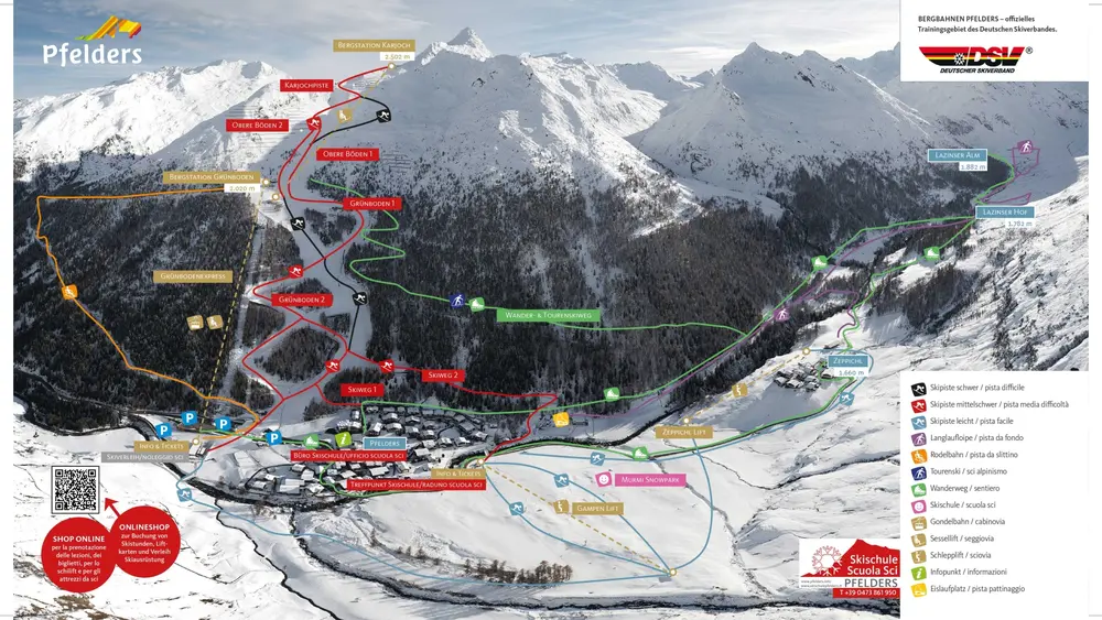 Talfahrt auf einer Piste im Skigebiet Pfelders