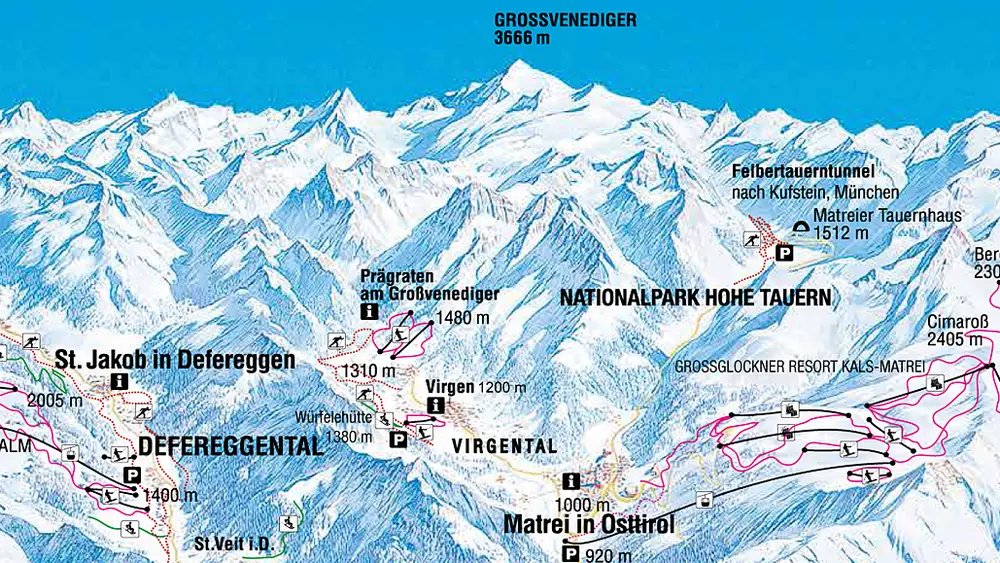 Blick ins Skigebiet Prägraten am Großvenediger