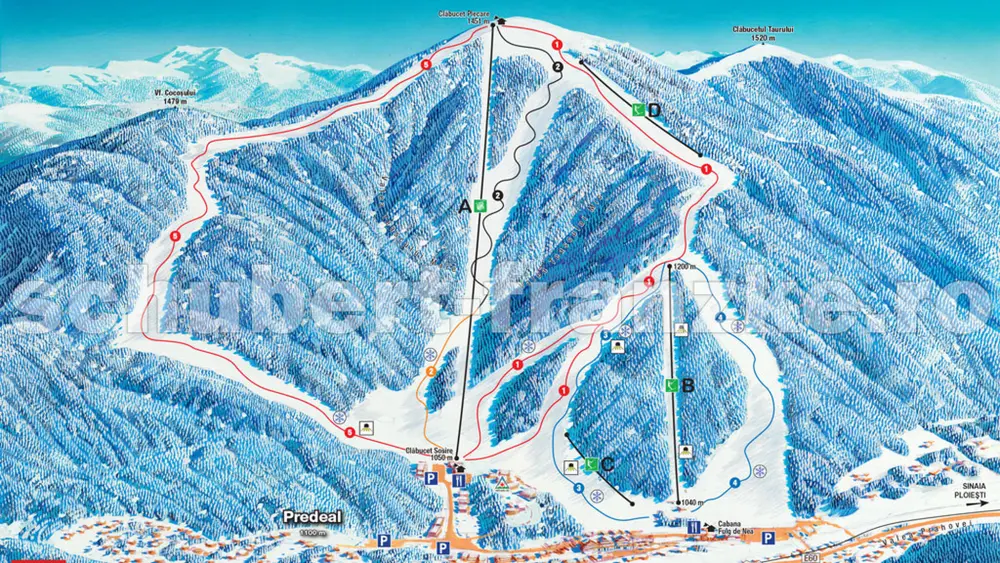 Blick von der Piste auf Predeal und die Berge