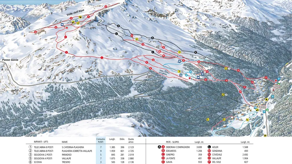 Blick auf eine Piste im Skigebiet Santa Caterina Valfurva