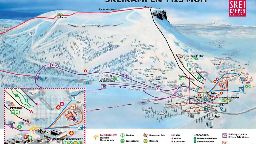 Blick auf das Skigebiet Skeikampen