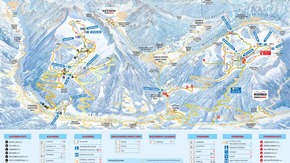 Piste in Speikboden mit Blick auf die Talstation